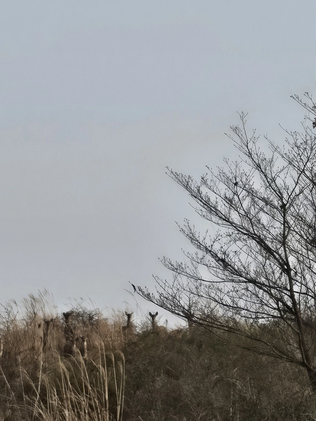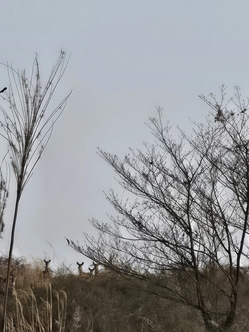 그저께는 사장님이랑 둘이만 걷다가 우릴 살짝 피해 달아나던 상큼한 노루와 눈이 마주쳤다. 저만큼 달려가더니 우릴 보고 얼음 땡! 한다. 괜찮아, 우린 널 안 해친다고! 소리치면 알아듣겠냐만 우리는 한참 바라보다 팔을 흔들고 헤어져 걸어왔다. 한참 걸어내려 가는데 오른쪽 둔덕에서 갑자기 후다닥 움직이는 것들이 보인다. 수시로 만나는 꿩과 소리가 다르다. 고라니 소리도 아니다. 앗! 2,30여 마리 노루가 떼로 달아난다. 우와! 우리는 입이 떡 벌어졌다. 그동안 한 두 마리는 수시로 보아왔지만 이렇게 무리 지어 다니는 모습은 처음인지라. 저희도 놀랐는지 산마루로 올라서서 귀여운 두 귀를 쫑긋 안테나 세우고 네댓 마리는 우리를 계속 지켜본다. 우리가 그들을 바라보는 건지 그들이 우릴 바라보는 건지, 관찰자가 누군지 헷갈리는 순간이다. 인간을 처음 본 건 아니겠지. 새끼들인지 좀 작은 녀석들은 꼼짝 않고 바라보는 세 마리 앞에 알짱거리며 거닌다. 우리가 자릴 뜨지 않는 한 저희도 자릴 뜨지 않겠다는 듯 망부석이 되어 바라본다. 그래, 우리가 가마. 너희들의 영토에 우리가 얼른 지나가 줄게.