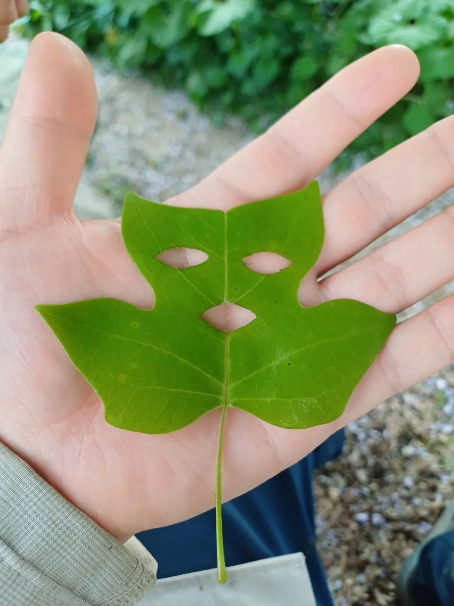 막내가 일하면서 갈참나무 잎으로 요런 장난도~.