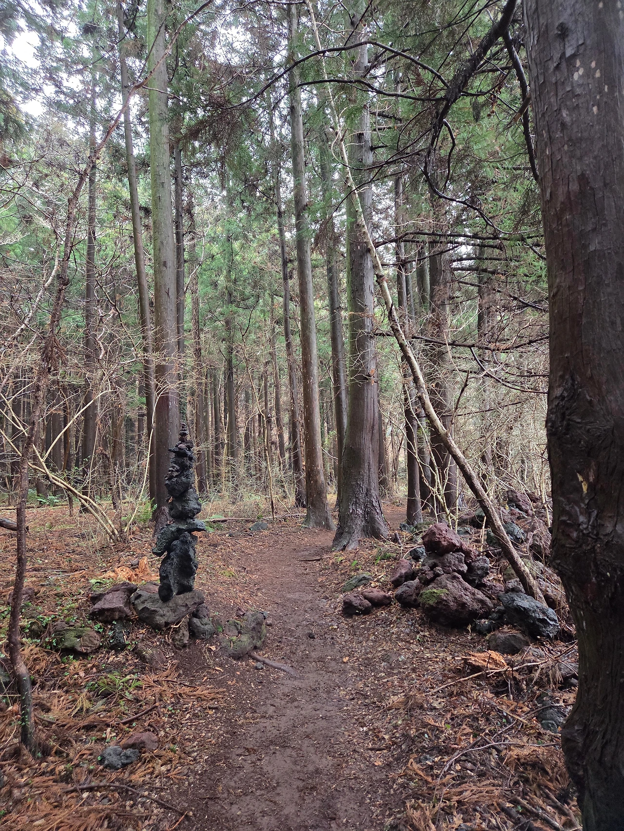 그토록 수없이 걸었던 집 가까이 있던 세미오름을 한 바퀴 돌고 조금 더 차를 타고 간 뒤 우진제비오름을 올랐다. 세미오름은 잘록한 허리를 하고 구름을 들어 올리며 여전히 다소곳이 엎드려 있었다. 반가움에 두 손을 맞잡고 공손한 인사로 발을 떼었다. 익숙한 오르내림과 낯익은 산자락, 상산나무가 연갈색 귀여운 열매를 동서남북으로 달고 있고 활엽수들은 빈 하늘을 보이며 서 있다. 송악은 활엽수 이파리가 남아 있지 않은 늦가을부터 부지런히 나무에 털뿌리를 박고 저벅저벅 기어올라 나무를 ‘고사시킬 테다’하는 의기양양함으로 초록의 빈자리를 메우며 곳곳에 푸르르다. 우듬지 나뭇가지들의 가는 떨림과 잔가지들의 흔들림은 내 마음 가지를 닮아 있는가. 삼나무들의 울창하고 빽빽한 기상은 겨울을 견디고 봄을 찬란히 맞이할 태세를 갖췄다. 내게도 겨울을 홀로 견딘 기상이 아로새겨졌으려나? 숲은 여전히 젊음과 스러짐으로 교차되고 머물러 있으되 새로 태어나는 중이다.