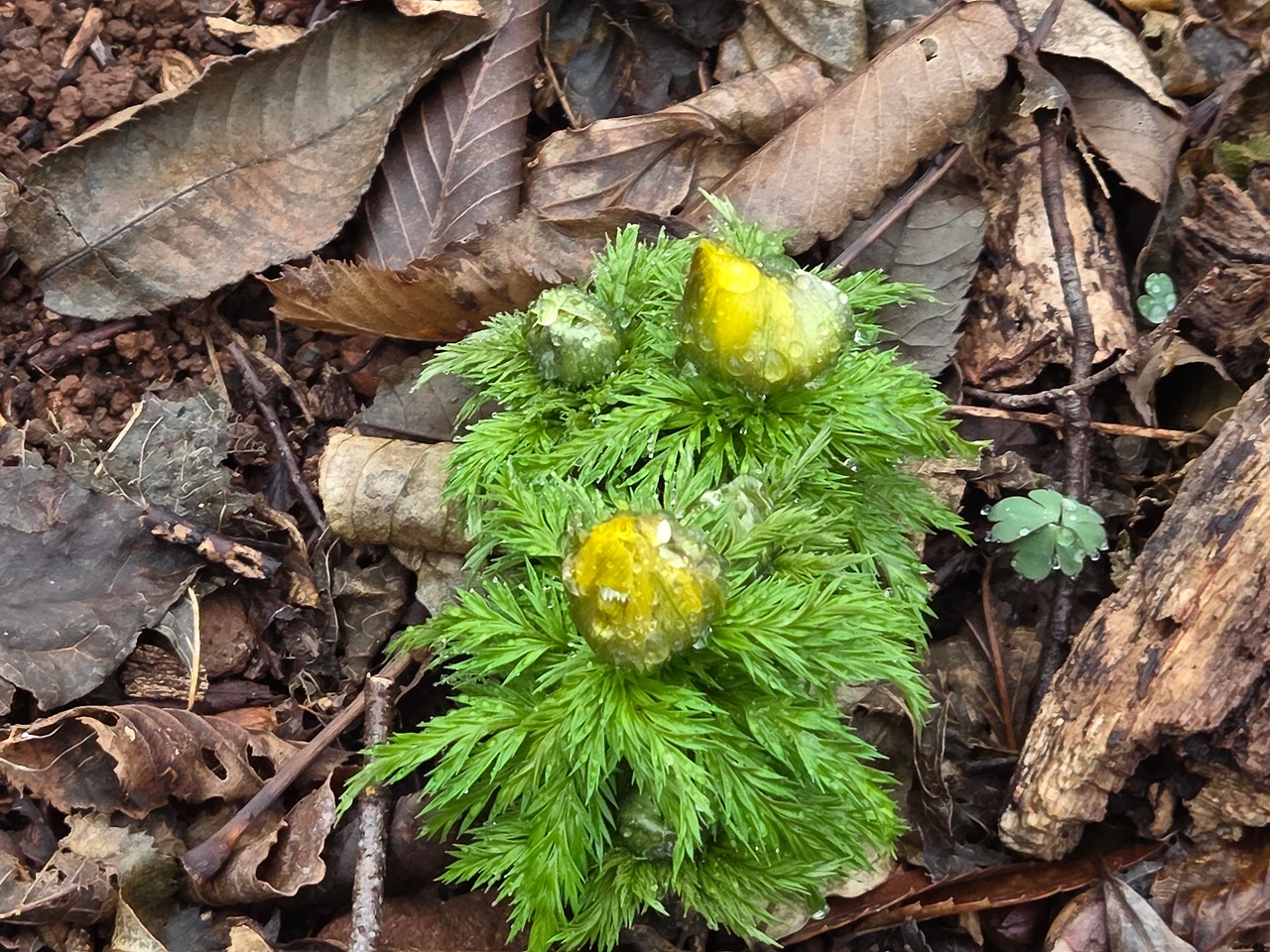 입을 열지 않고 빗방울을 투명하게 매단 채 낮은 키로 까치발 하고 있는 복수초를 하나둘 만나며 걸음은 느려질 수밖에 없었다. 느린 걸음, 느린 시선으로 천천히 머물며 바라보는 복수초는 올해도 살아 있음을 알린다. 일 년을 기다렸으니 꽃으로 삶을 다시 향유하는 그대들이 빛나지 않을 이유가 없다. '화양연화(花樣年華)는 우리의 매일이어라' 온몸으로 말하며 그렇게 봄은 노랑으로 화창히 시작하는 중이다. 벌과 나비를 부르며 쨍한 빛으로 피어날 그대들이여, 겨울을 이겨내느라 두툼히 입은 솜털 옷 사이로 봄이 보시시 열리고 있구나.