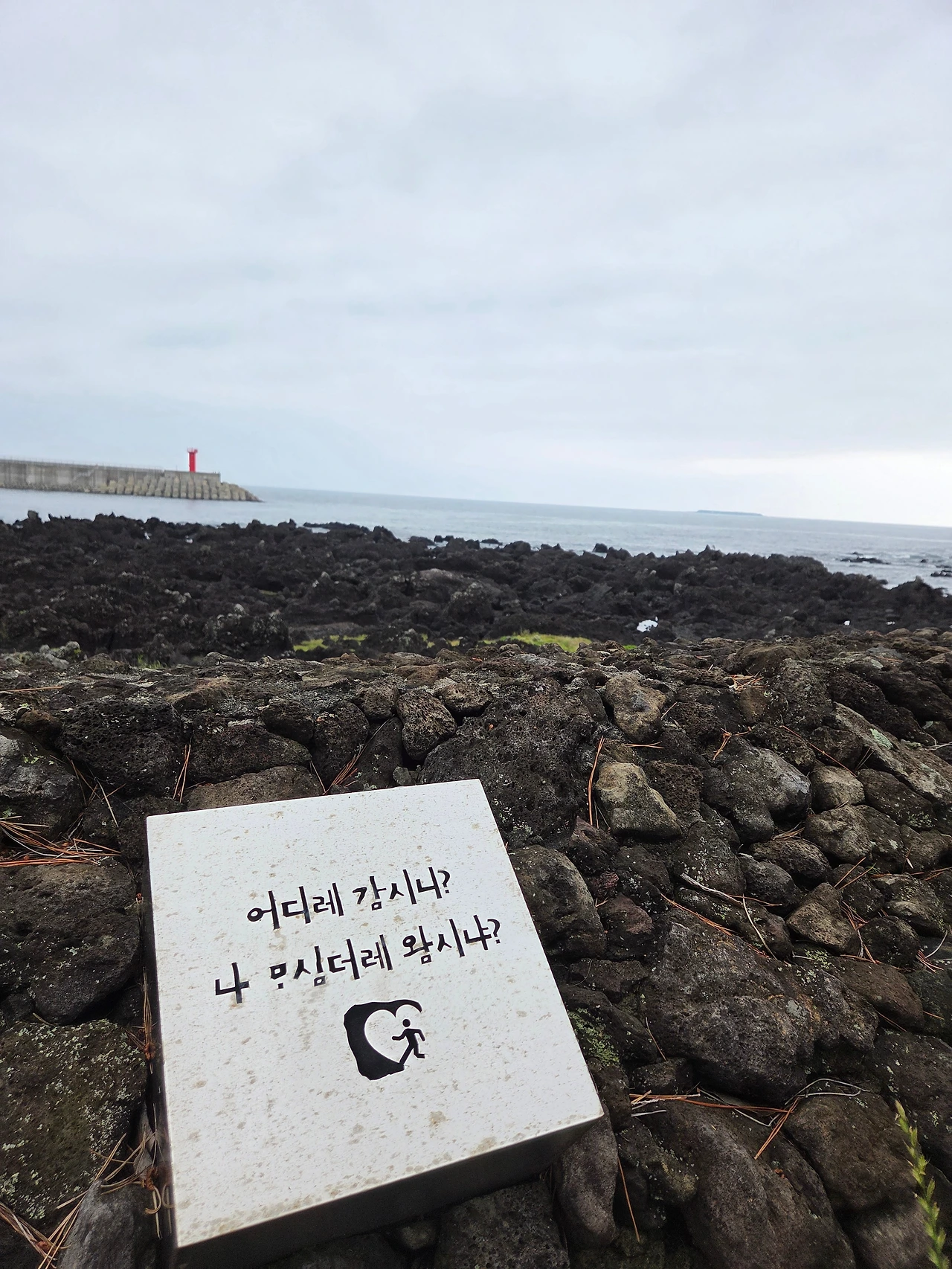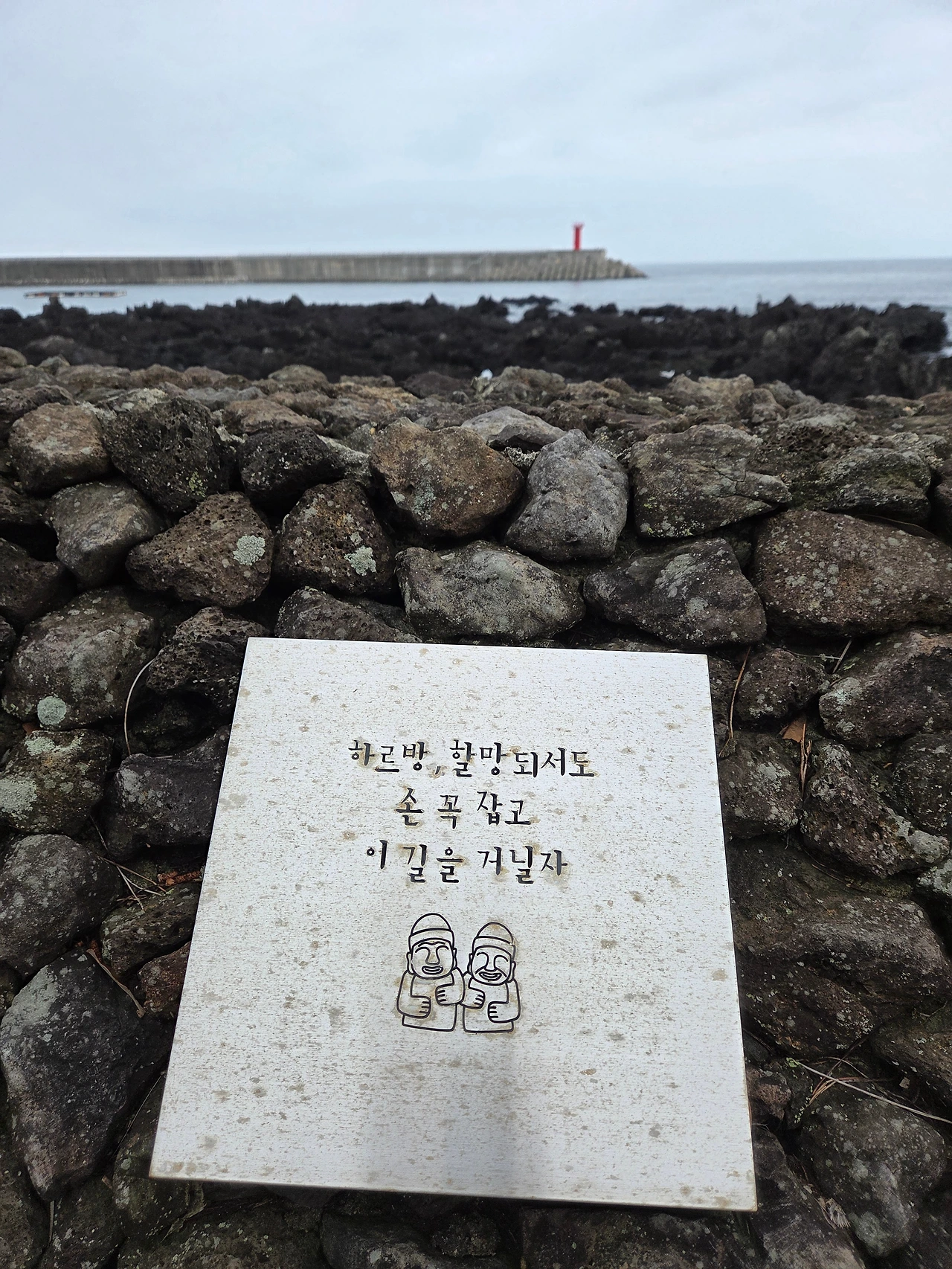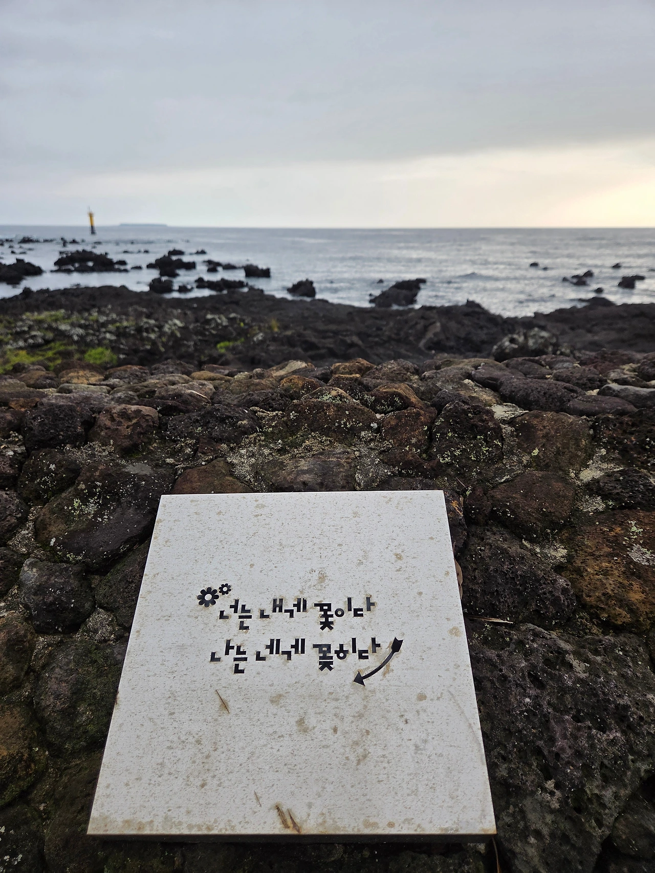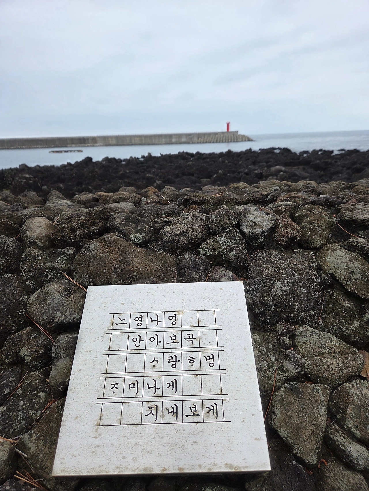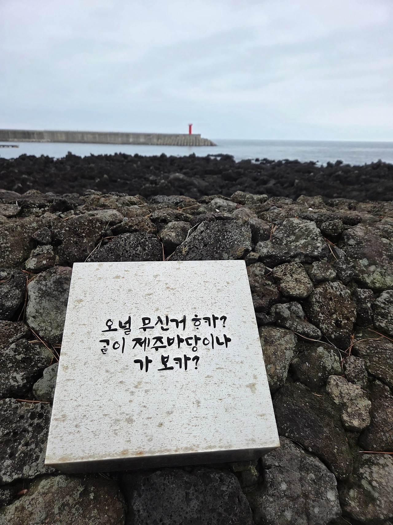 이층 내 앞방 갑장에게도 먹으라 밥도 넉넉히 해 두었고 조천 친구랑 아래 숙소 동생도 불렀다. 다른 손님들은 들어오질 않아서 한 냄비 떠서 내려보냈다. 배불리 한 대접씩 먹고도 넉넉히 남아 일부 얼려놓고 일부 덜어 위미리 바닷가에 제주 감귤 농사짓는 친구에게 갖다 주었다. 건네주고 잠시 이야기하고 돌아서 바닷가를 걸었다. 언제든 위미리 바닷가는 한결같이 뾰족한 바위가 많은데도 익숙해 살그머니 풍경에 안긴다. 몇 걸음 걸을 때마다 재미난 제주말도 따라온다. 전에 남편과 같이 걸으며 깔깔대며 웃었던 글도 여전하다. 40여분 죽 걸어 올라가서 파도를 보며 떠오른 시어를 메모하고 되짚어 내려오는 길.