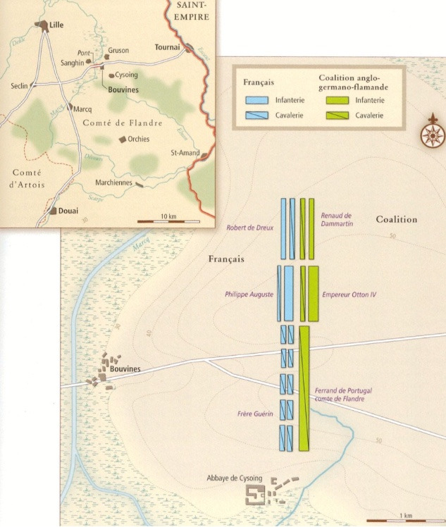전투 대열은 세 파트로 나누어졌으며 중앙에 필립 오귀스트가 있었다. 그를 기준으로 오른쪽 전열대가 먼저 전진했고 그다음으로 중앙 전열대가 움직였다. 전투는 3시간 동안 지속되었으며 피와 시체로 가득 채워졌다. 짧고도 긴 이 시간 동안 더 많은 사상자를 내는 곳이 승자가 되던 시절이었다.