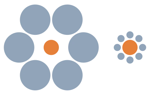 왼쪽의 주황색 원은 작아 보이고, 오른쪽 주황색 원은 커 보인다. 사실 두 원은 크기가 같다.