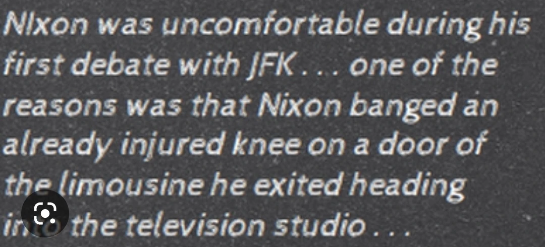닉슨은 이날 TV 토론장으로 향하던 중 리무진 문에 이미 다친 무릎을 또 부딪히는 사고를 당했다고 한다. 이러한 속사정까지 알았다면 그의 행동이 이해되겠지만 보이는 정보로만 판단한다면 닉슨은 자신감이 없어 보이고, 불안하고 초조해하는 것으로 보일 수밖에 없다. 비언어적 커뮤니케이션은 우리의 생각보다 훨씬 막강하다. 말을 잘하는 것만큼이나 비언어적 커뮤니케이션을 신경 써야 하는 이유다. 의상의 경우에도 케니디는 인물을 부각하는 검은색 슈트에 흰색 셔츠를 입었지만 닉슨은 노쇄해 보이는 회색 슈트를 입어 비교된다.