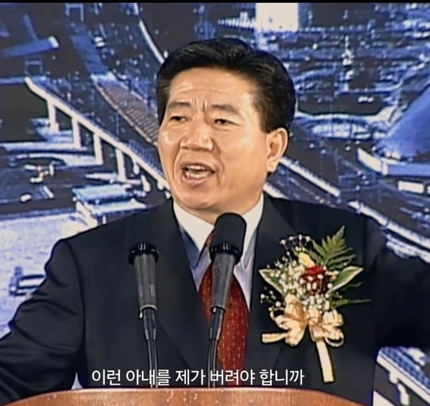 " 제 장인은 좌익 활동을 하다 돌아가셨습니다. 그러나 해방되던 해에 실명을 해서 앞을 보지 못했기 때문에 무슨 일을 얼마나 했는지 모르겠습니다. 제가 결혼하기 훨씬 전에 돌아가셨는데 저는 이 사실을 알고 제 아내와 결혼했습니다. 그리고 아이들 잘 키우고 지금까지 서로 사랑하면서 잘 살고 있습니다. 뭐가 잘못됐습니까? 이런 아내를 버려야 합니까? 그렇게 하면 대통령 자격이 있고 이 아내를 그대로 사랑하면 대통령 자격이 없다는 것입니까? 여러분! 이 자리에서 여러분이 심판해주십시오. 여러분이 자격이 없다고 하신다면 대통령 후보 그만두겠습니다. 여러분이 하라고 하면 열심히 하겠습니다."