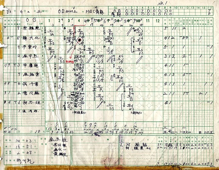 <1983년 개막전 기록지 ⓒ한국야구위원회>