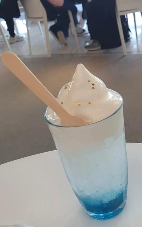 -공중정원에서 포토존 층이 있는데, 이곳은 통창으로 되어 있다. 그래서, 오사카 전망을 실내에서 보며, 맛있는 것을 먹을 수 있는데 나는 이곳에서 유명하다는 소다 음료를 시켜 먹어봤다. 맛은 그저 그랬다. 우메다 스카이 빌딩 내에 있는 카페였다. 만약, 배가 고프다면 이곳에서 음료 한잔 하며, 오사카 시내를 바라보는 것을 추천한다.