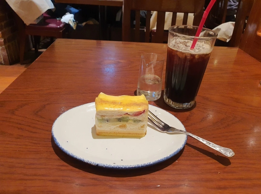 나는 일본 커피는 어떤지 궁금했기에 커피를 시켰다. 상당히 진한 맛이라서, 커피와 함께 제공되는 시럽을 적절히 섞어서 먹었다.