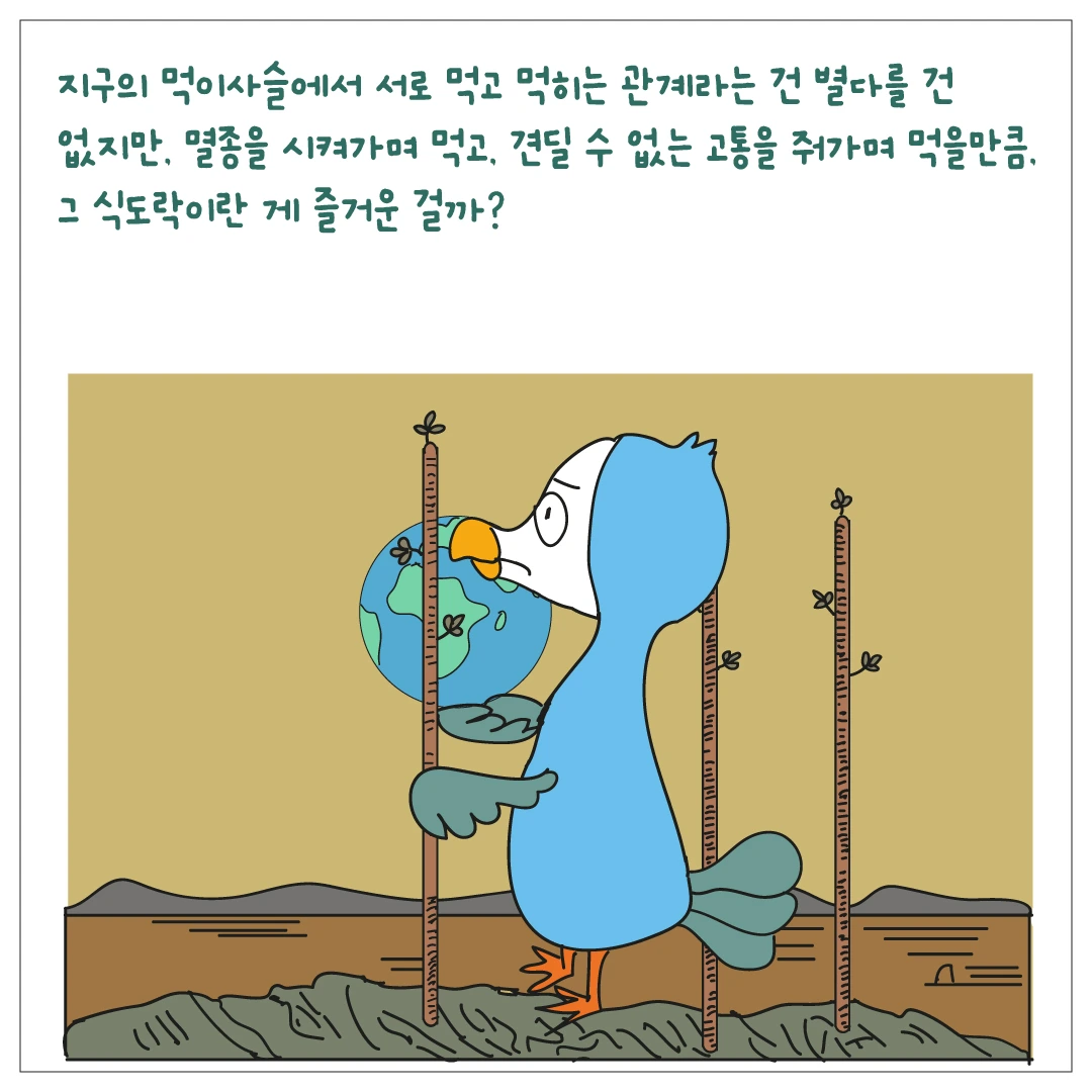 공존에 대한 모색과 실천이 있어야 할 이 시기에, 오히려 멸종을 앞당기거나 동물들에게 견딜 수 없는 고통을 주는 일은 이제 없었으면 합니다.