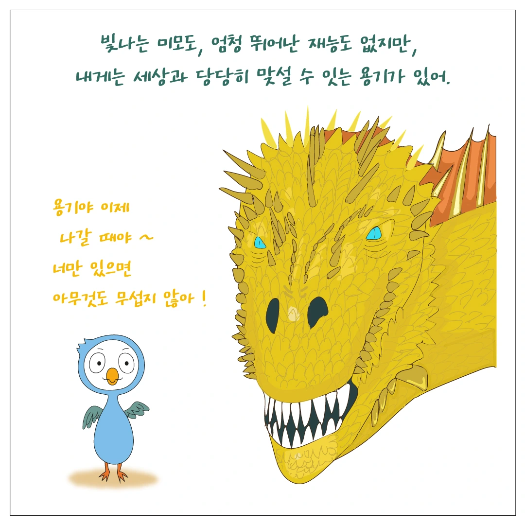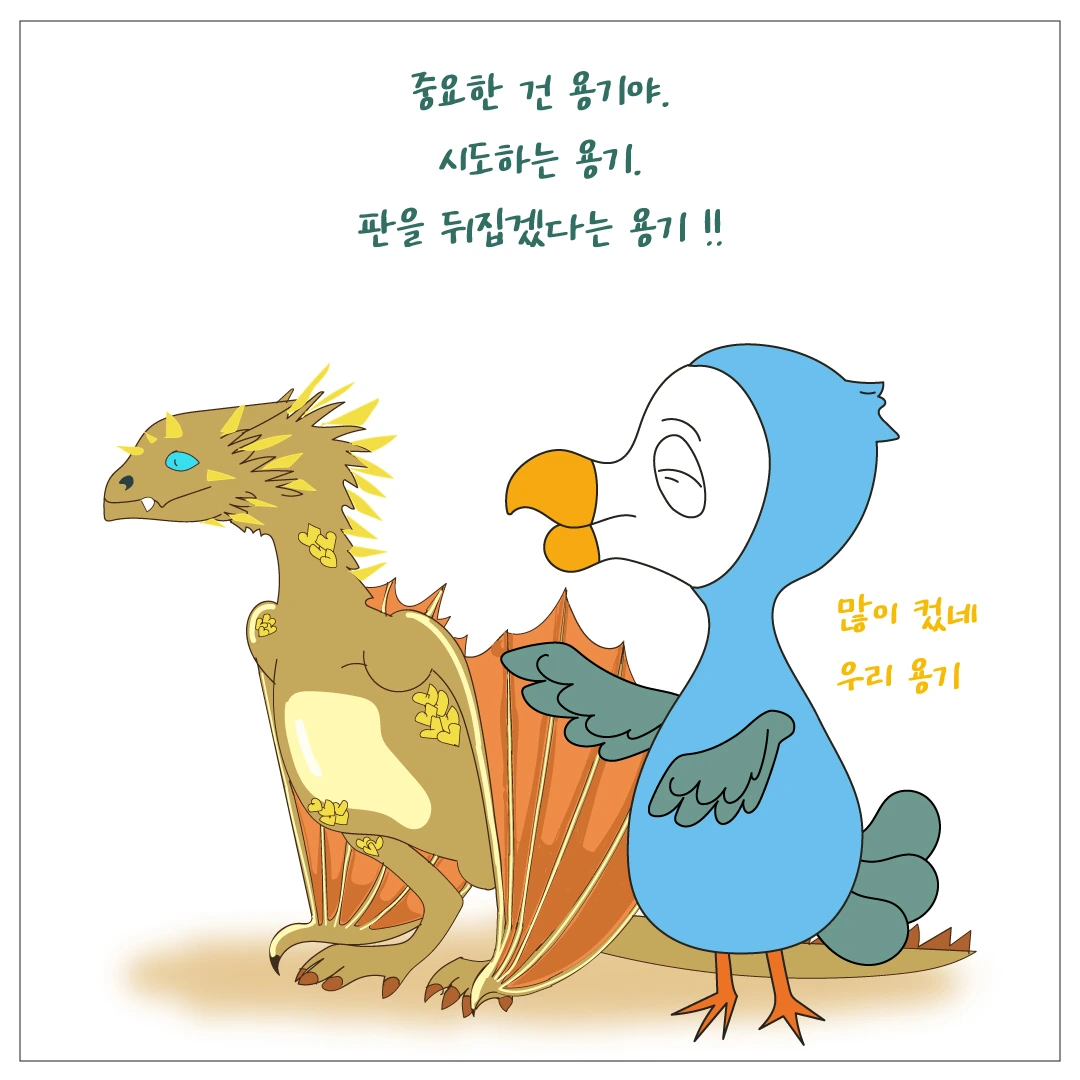 용기는 자신을 사랑하는 방법 중의 하나라고 생각합니다. 자신에게 여러 기회를 주세요. 두려워하면 점점 작아지지만, 용기를 내면 점점 커지는 자신을 볼 수 있어요.