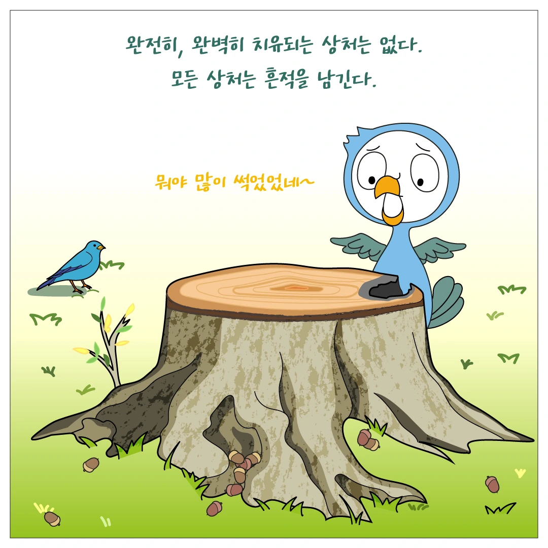 흉터는 남겠지만 그 상처를 이겨내기 위해 들였던 노력이 새로운 열매가 되어 우리들 인생의 힘이 되어 줄거라 믿습니다.