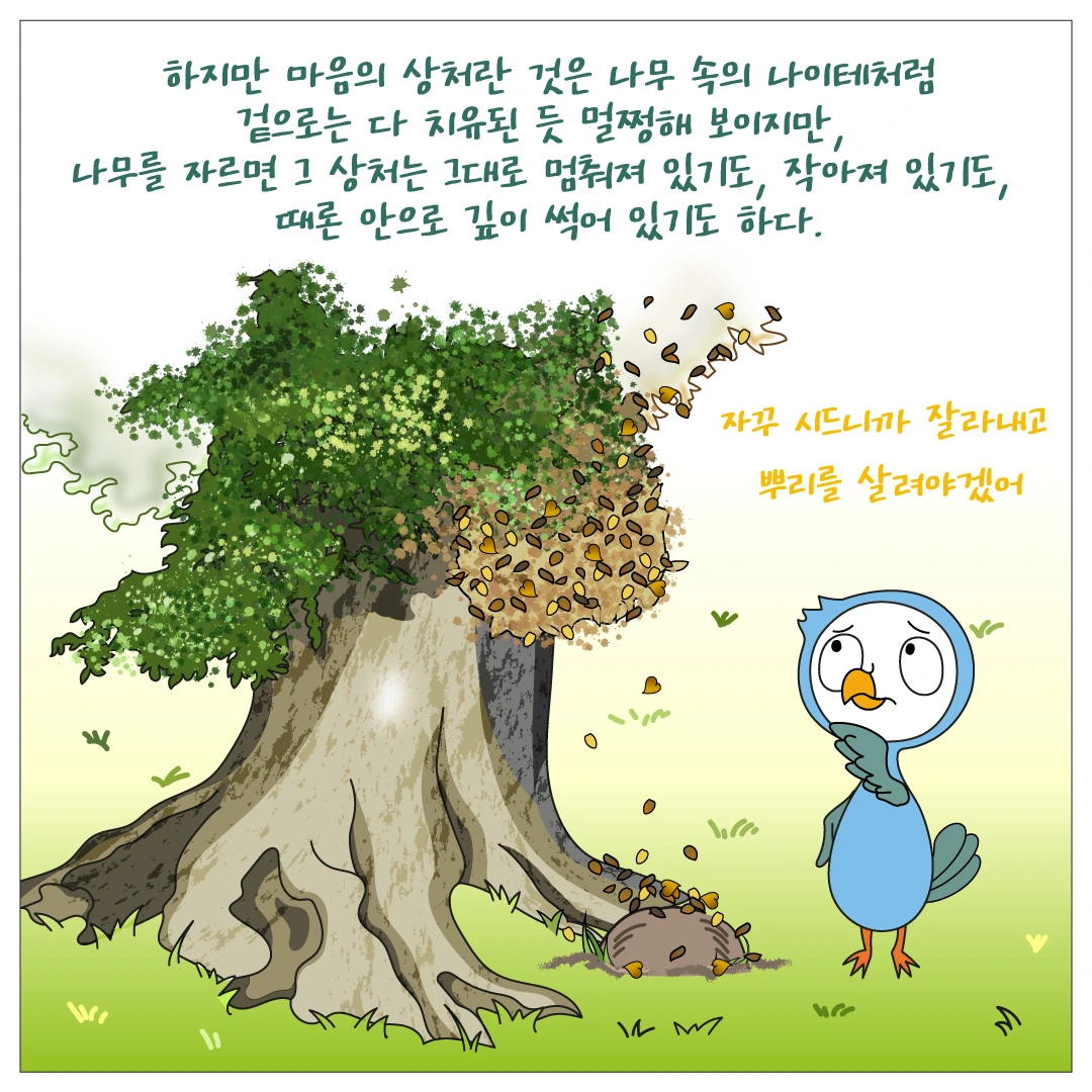 힘든 시기가 지나 조금 괜찮아졌다면, 아픈 상처를 들여다보고 위로해 주시고, 햇볕에도 내어놓아 새살이 돋게 해 주세요.