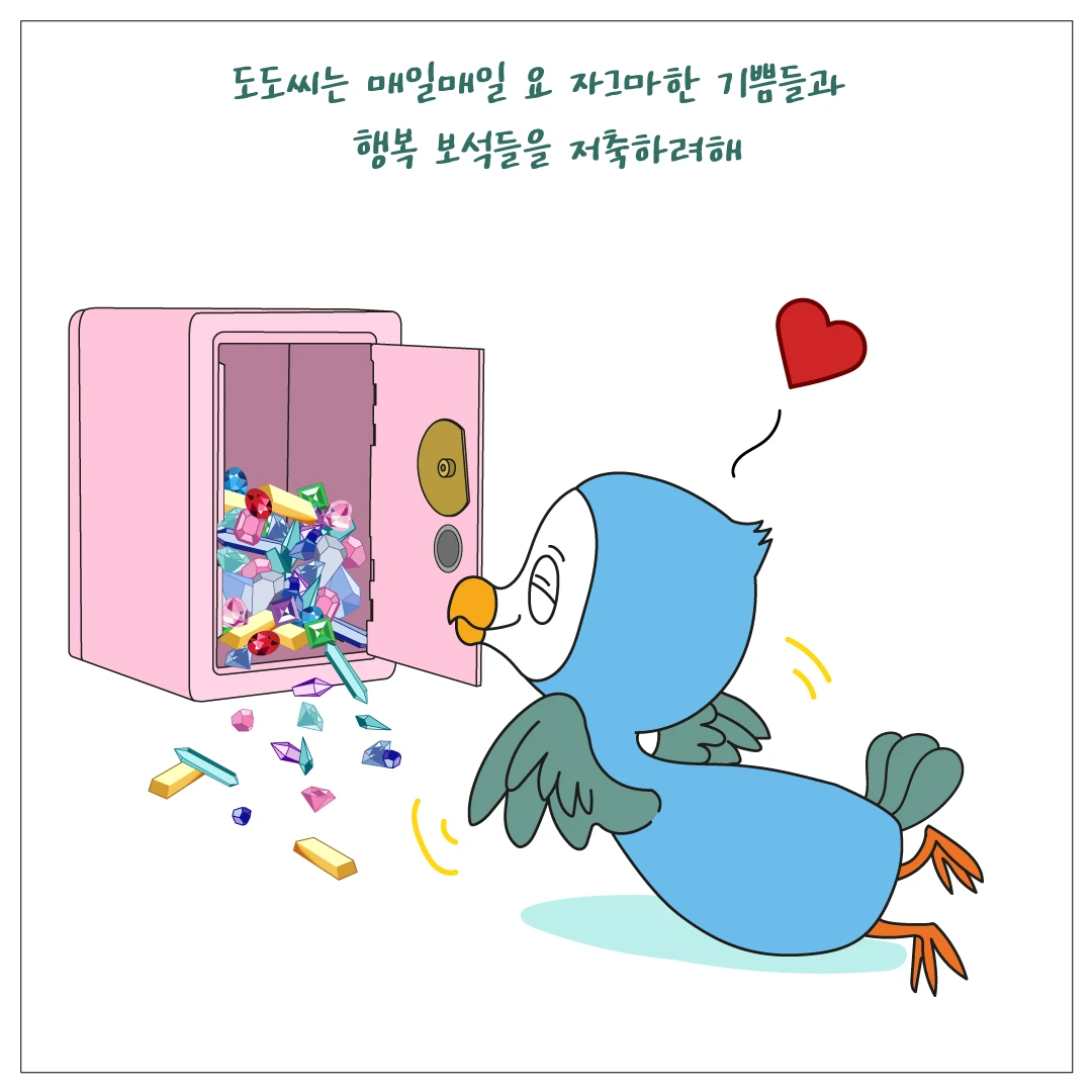 일상의 작은 기쁨들을 음미하고 마음 안에 차곡차곡 담아, 우리의 내면을 넉넉하고 충만하게 한다면 점점 더 자라나는 행복을 느낄 수 있습니다.
