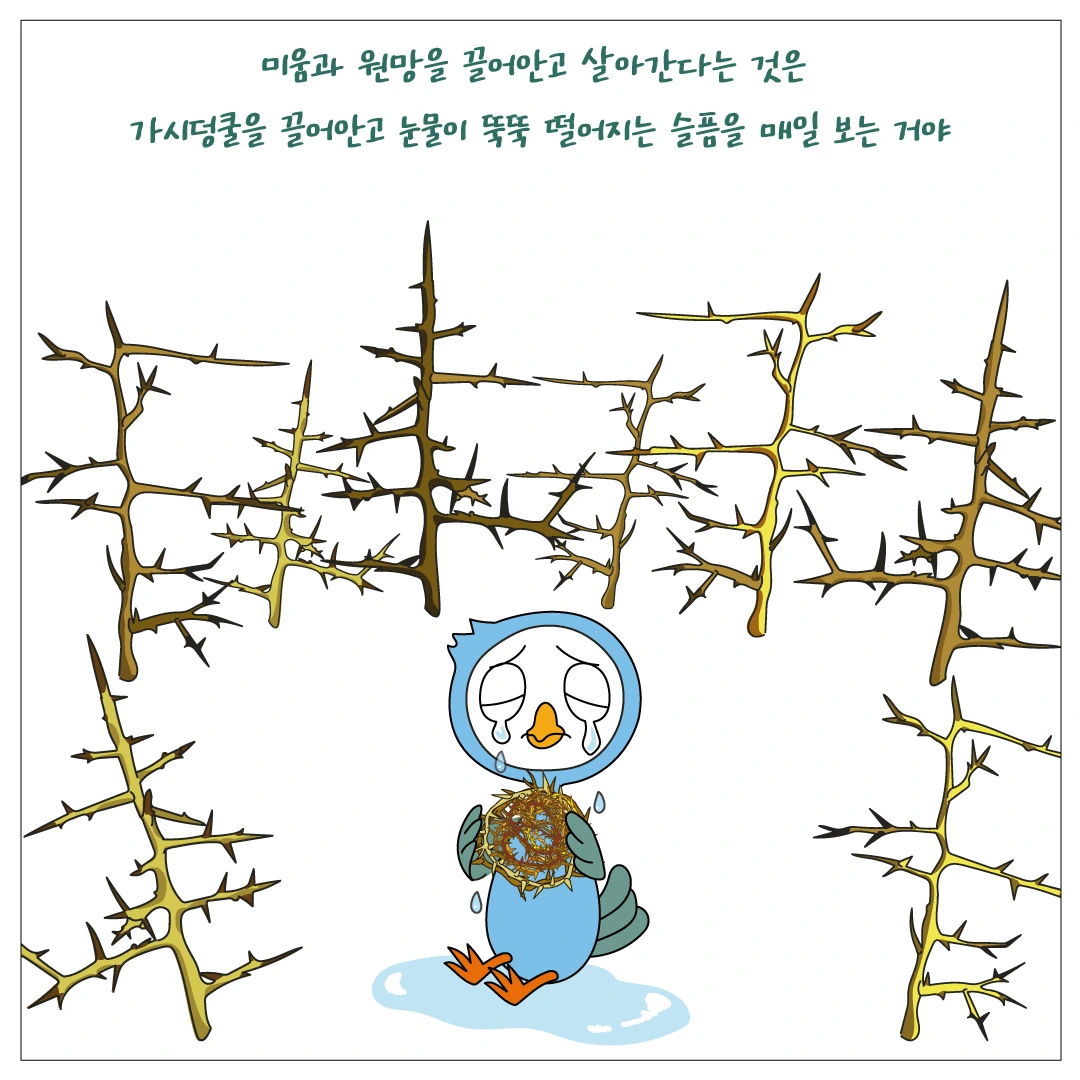 이건 미움이란 지옥에게 나 스스로를 통째로 내어주는 거라 생각합니다. 미움은 미움을 계속 끌어당겨 비정하게 만들고 증오심에 갇히게 합니다. 마음에 태산같이 큰 돌산을 넣어놓고 사는 것처럼 숨도 잘 안 쉬어지고 앞으로 나아갈 수도 없는 커다란 고통입니다.