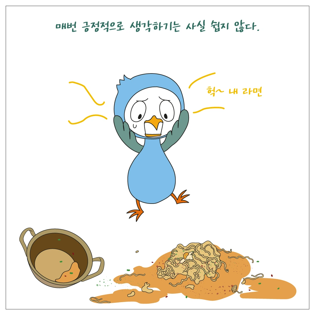 그런데 보는 시험마다 떨어지고 뭐든 한번에 되는 게 없던 저에게 매사를 긍정적으로 생각한다는 건 참 어려운 일이었습니다.