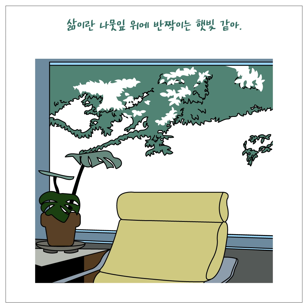 슬픈 이별도 회사에서의 모욕도 그렇게 흘러가고 지금 남은 저는 조금 더 단단해졌습니다. 그리고 지금은 힘든 순간이 와도 그 사이사이로정신이 나는 커피 한 모금, 내 가까운 사람들에게서 듣는 위로, 햇볕 속으로 장난치며 지나가는 꼬마들을 보며 행복을 느끼곤 합니다.