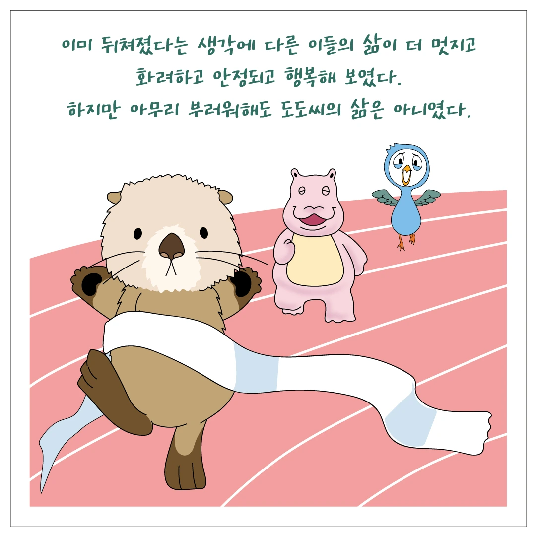 타인들의 삶을 부럽게 바라보는 대신 제 삶의 모습에 더 집중하게 됐고 그러다 보니 산다는 게 꽤 즐거워졌습니다. 숨통이 트이는 느낌이었어요.