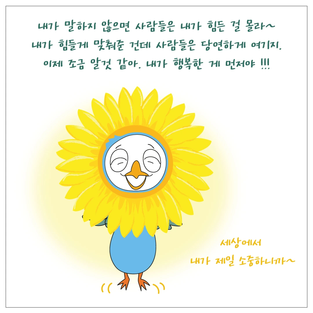 이 지구에서, 이 우주에서 제가 제일 소중하니까요. 제 안에는 저만 바라봐주는 사랑스러운 해바라기가 있으니까요.