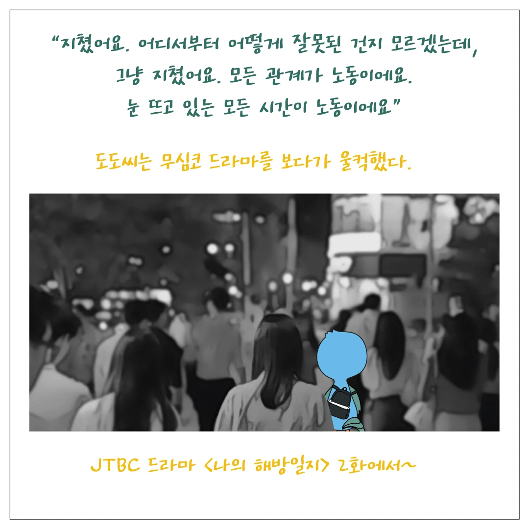 여주인공인 염미정이 무표정한 얼굴로 나지막하게 읊조리던 "모든 관계가 노동이에요"라는 대사 때문이었어요.