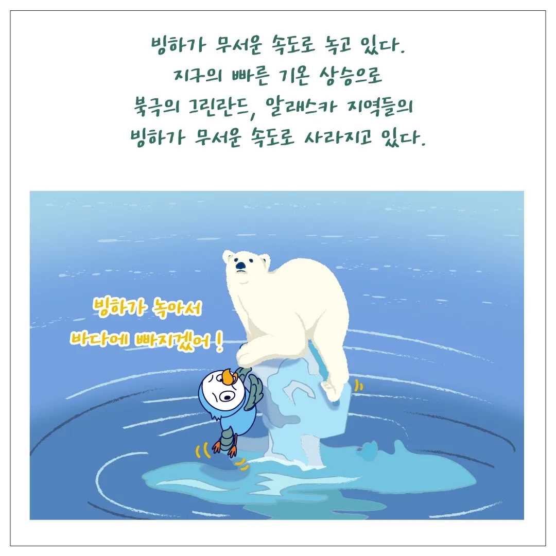 빙하가 여러 방면에서 인간과 자연을 지켜주고 있었다는 걸 빙하가 사라져 버리고 있는 이제야 깨닫고 있다는 게 너무 안타깝고 쓰립니다.