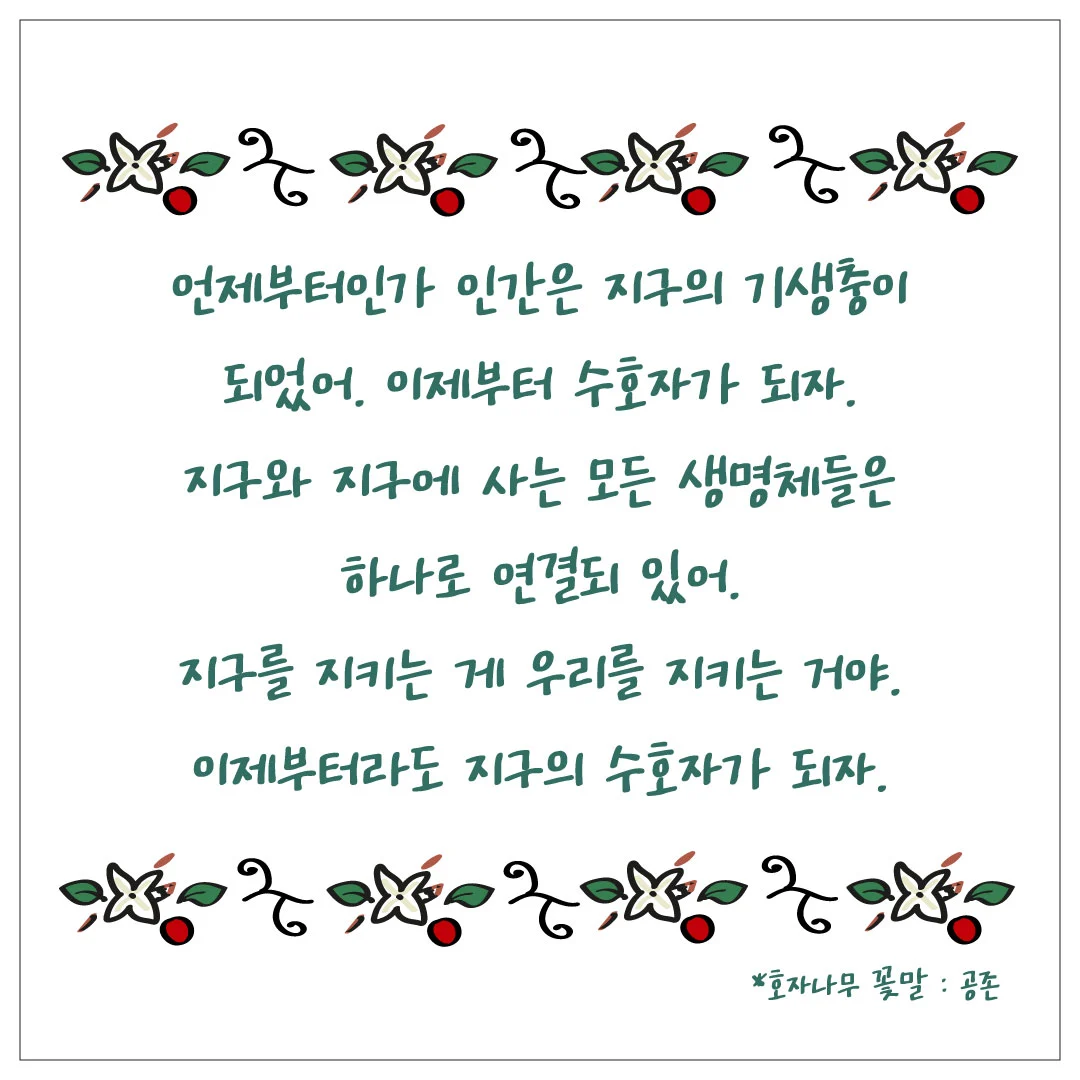 이제 인간들이 지구의 수호자 가 되어, 하나의 지구를 지켜야 하지 않을까요?