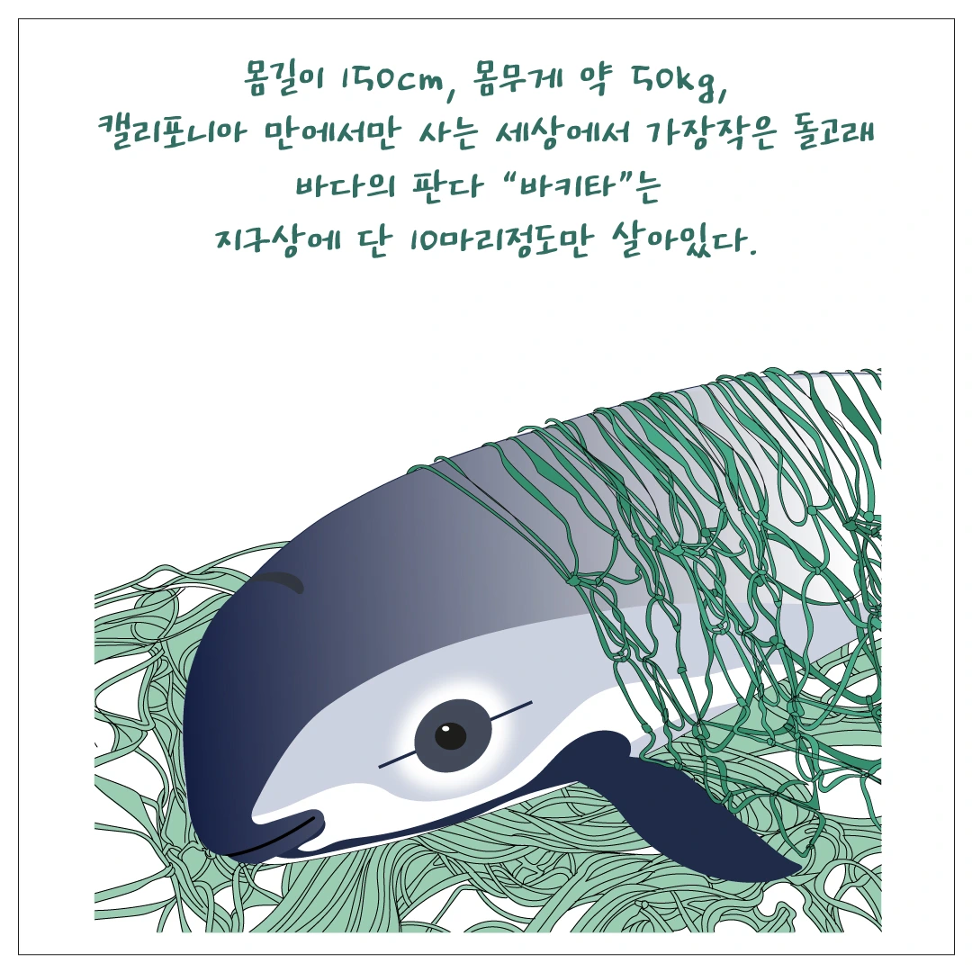 하지만 곧 이 귀여운 바다의 판다 "바키타 돌고래"를 영영 다시 보지 못할 수도 있습니다. 바키타 돌고래와 같은 서식지에 사는 토토아바라는 물고기의 부레가 중국에서 보양식으로 큰 인기를 끌면서 그물에 함께 잡혀 죽는 일이 일어나고 있어요.
