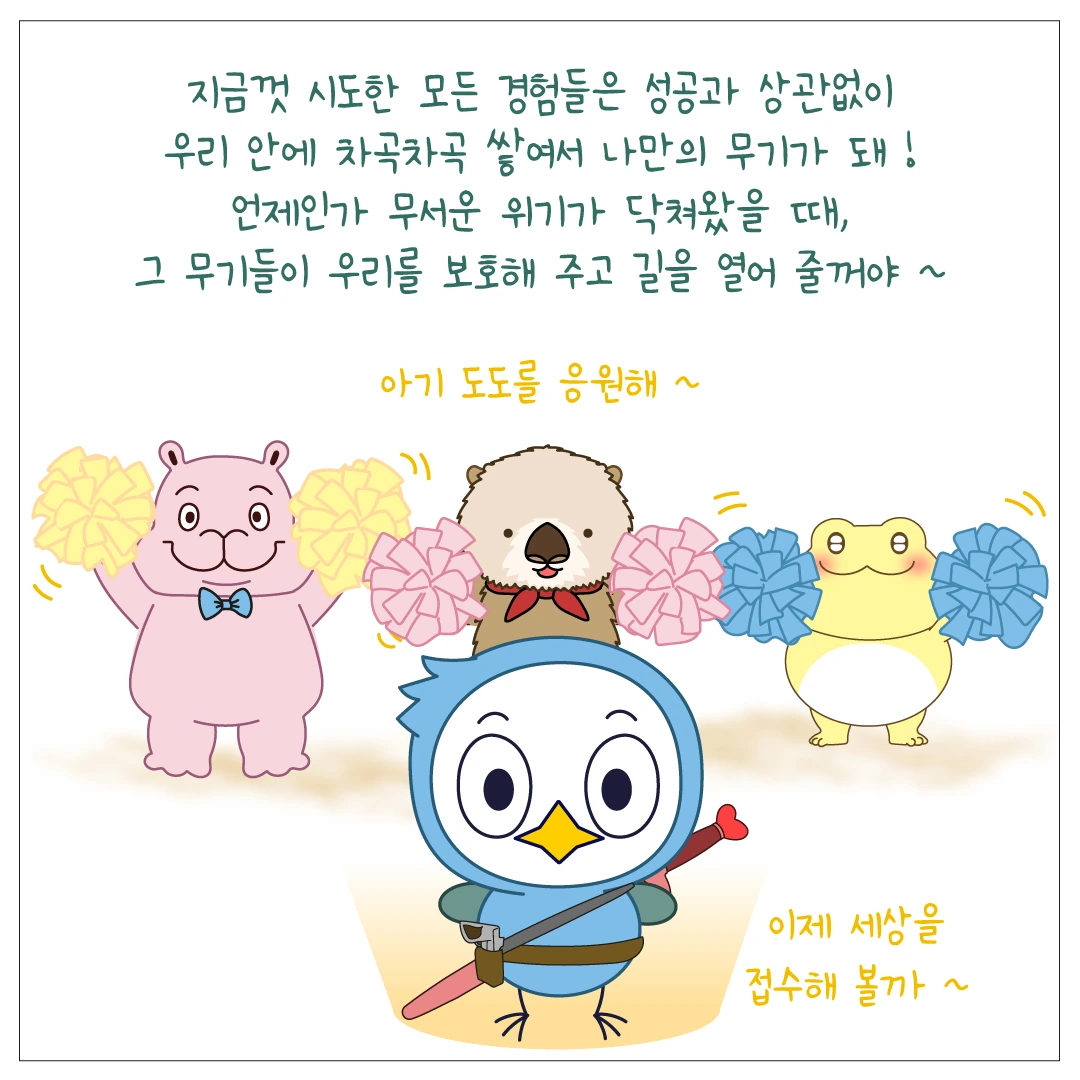 근데 꼰대처럼 들리실 수도 있겠지만, 실패한 경험도 경험이더라고요. 살다 보면 생각지도 못한 상황이나 의도치 않은 경우들이 갑자기 들이닥쳐 무방비하게 맨몸으로 부딪쳐야 할 때가 있잖아요. 그때마다 저를 구해준 건 과거에 겪었던 모든 경험들이었습니다. 오히려 실패해서 쓸모없다 생각했던 경험들이 저만의 무기가 되어 저를 도와주고 힘이 되어주었습니다. 심지어는 명절 때마다 투덜거리며 전을 부쳤던 경험도 갑작스럽게 음식 관련 일을 하게 되어 유용하게 써먹었었어요.ㅎㅎ