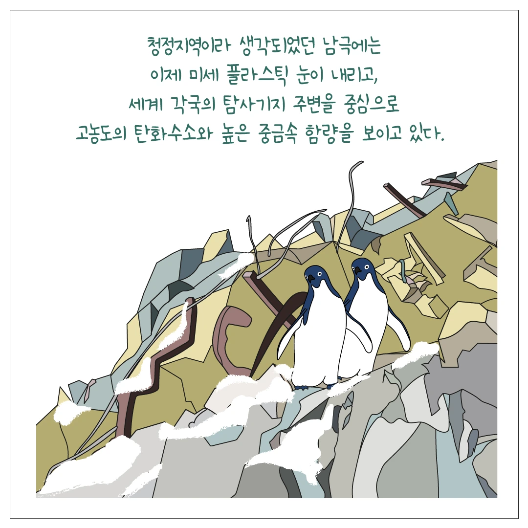 남극에 내리는 눈에도 미세플라스틱이 포함된 게 확인되었습니다.