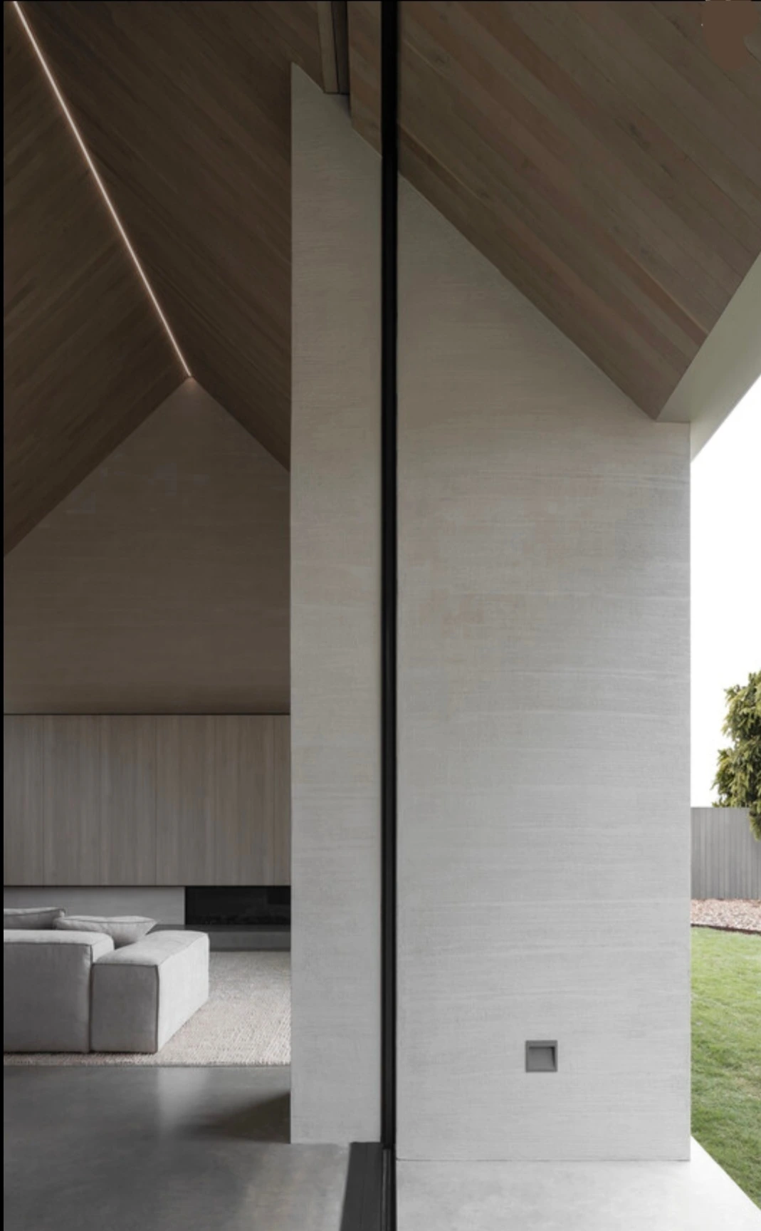 이러한 균형 잡힌 긴장에 대응하여 주택은 형식적으로 그리고 질감적으로 부지와 상호 작용하도록 설계되었는데 해안 마을이자 환경과 매우 밀접하게 연결된 작은 커뮤니티인 이 지역은 특히 날씨와 짠 바람을 고려해야 하는 특징이 있었고 공간을 설계할 때 이 지역은 질감이 있고 땅과 연결된 무언가를 필요로 했다