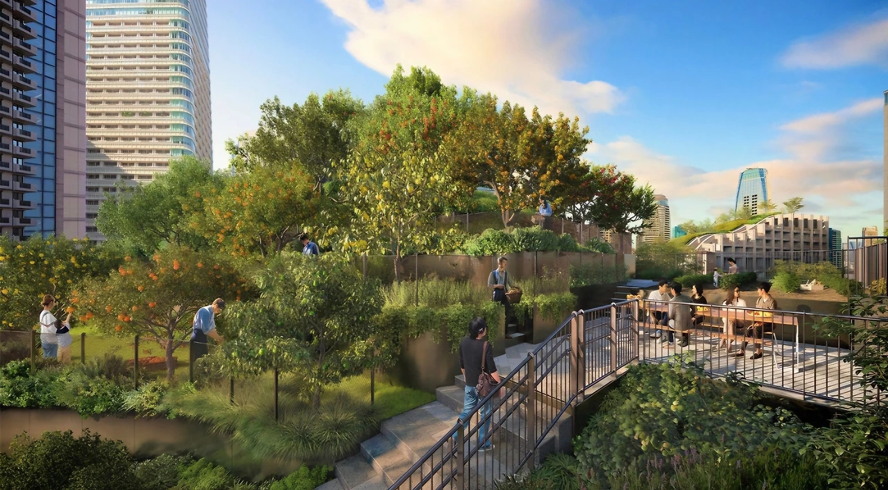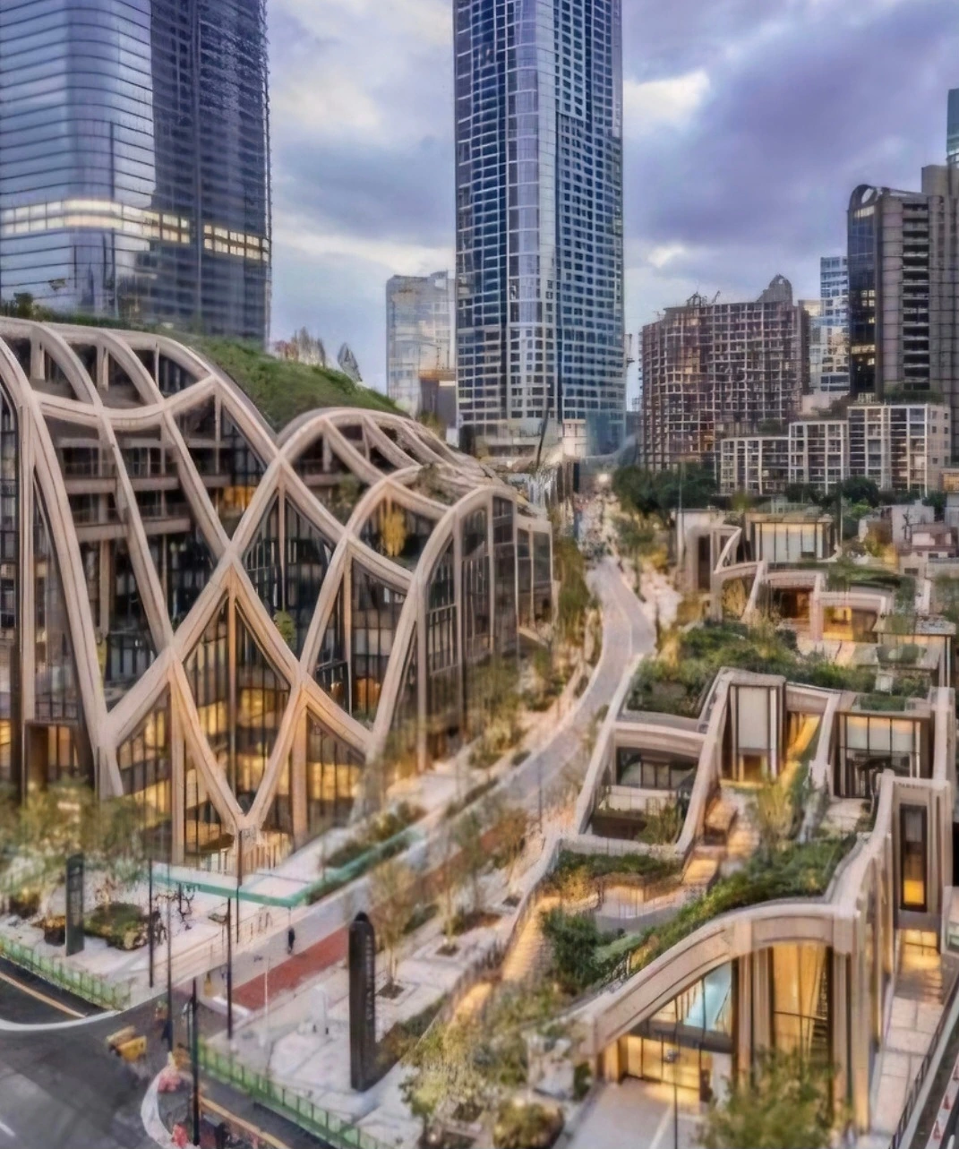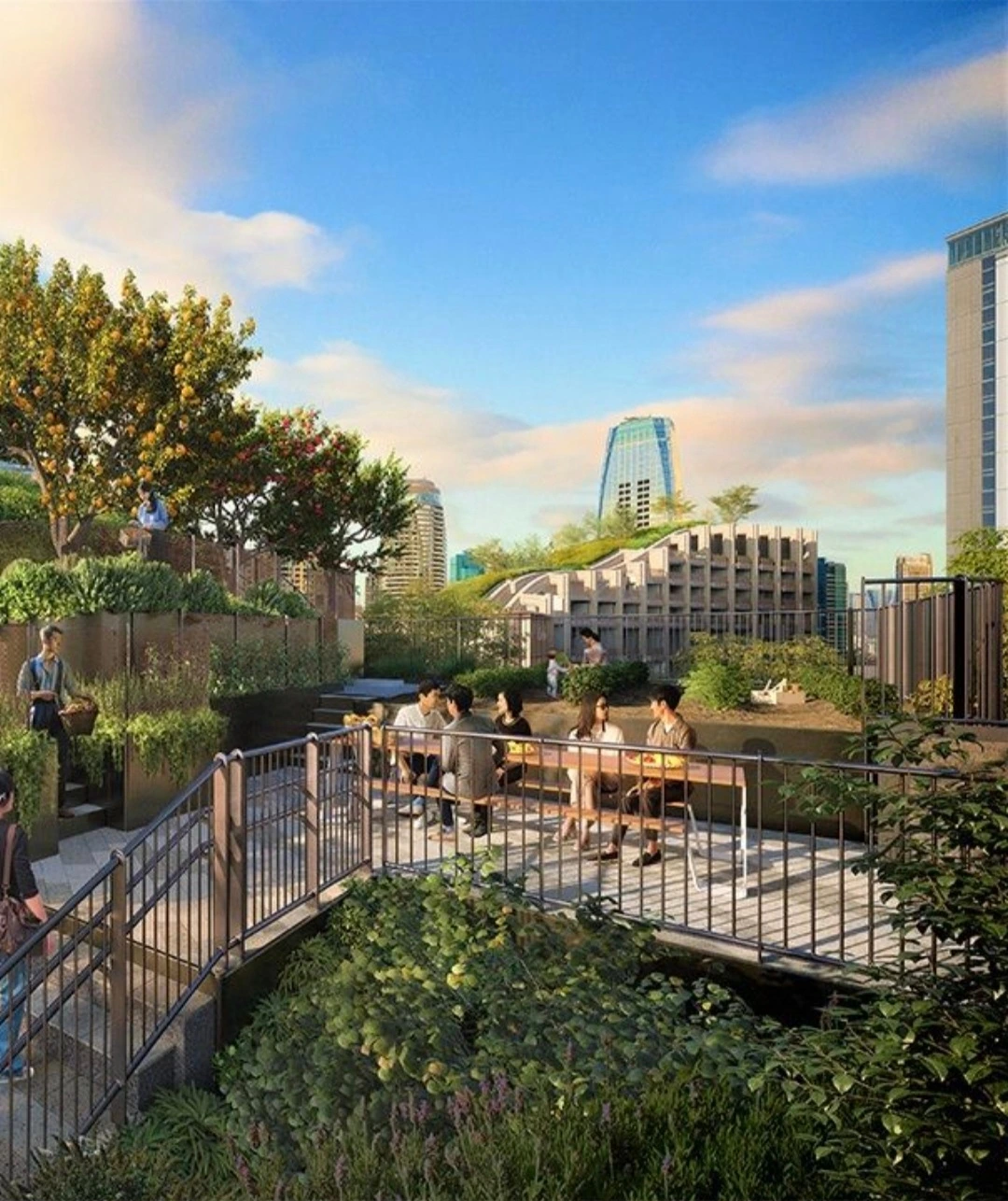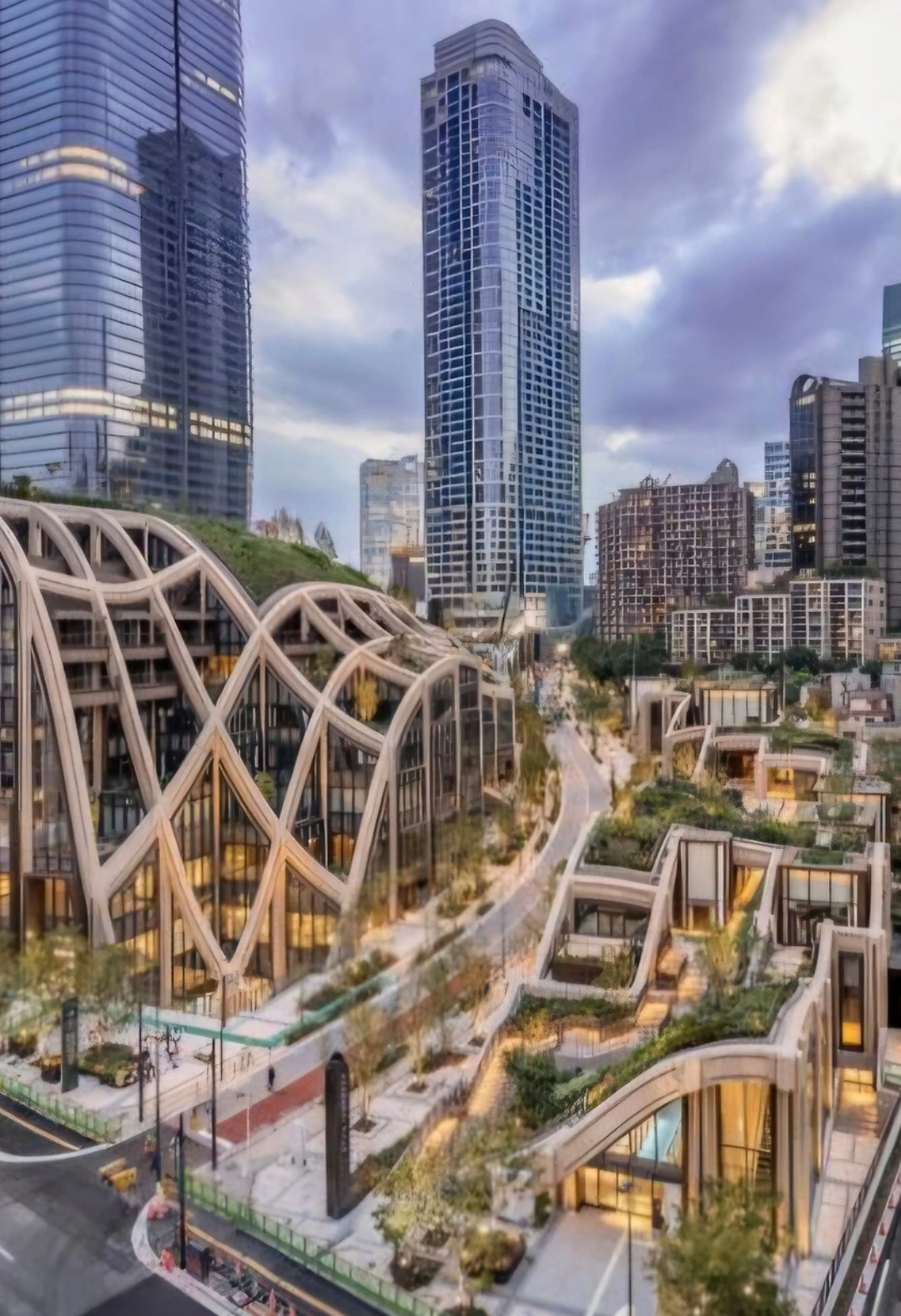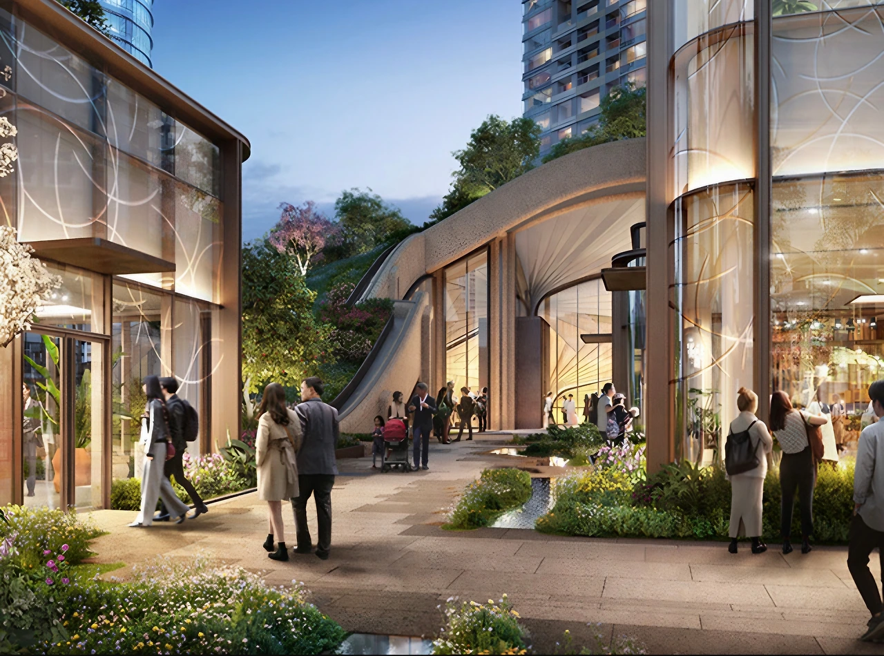 다양한 새로운 상업 시설과 호텔, 주거 지역, 사무실 공간, 교육 시설이 한데 어우러진 이 공간은 녹색과 웰빙"을 주제로 설계되었는데 이 프로젝트의 목표는 사람들이 공공 공간에서 예술과 녹지를 감상할 수 있도록 하는 것이다.