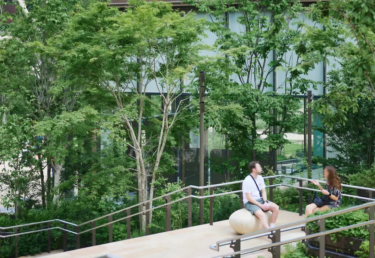 그 결과, 조경 면적은 약 24,000m²에 달하는데 이 면적은 Azabudai Hills 부지의 약 1/3로 주변 Roppongi Hills의 부지 면적의 1/10만 녹지 공간인 것과 비교했을 때 압도적으로 높은 비율이다