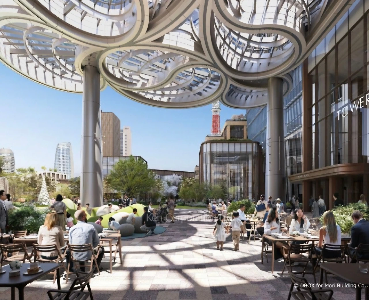 두 명의 건축가와 협력하여 마스터플랜을 주도한 모리빌딩컴퍼니는 건물 뒤에 녹지 공간을 채우는 전통적인 접근 방식 대신 광장을 중심으로 조경을 설계하고 주변 환경과의 통합을 고려하여 타워를 배치했다