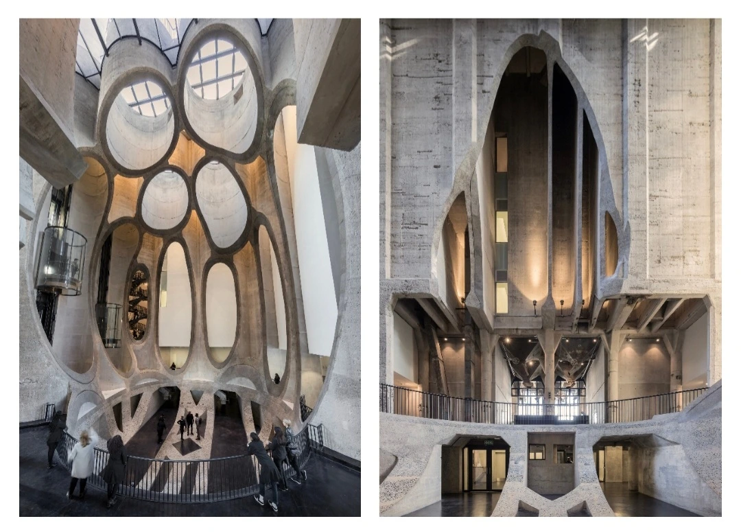 이 아이디어를 실현하기 위해 여러 구조적 실험을 수행한 결과 직선과 곡선을 모두 교차하는 그리드 시스템이 탄생했다.