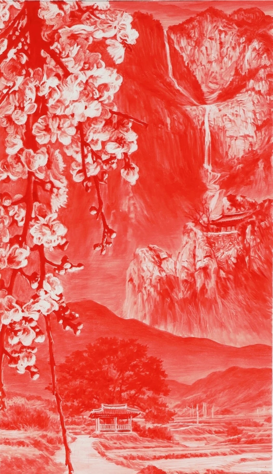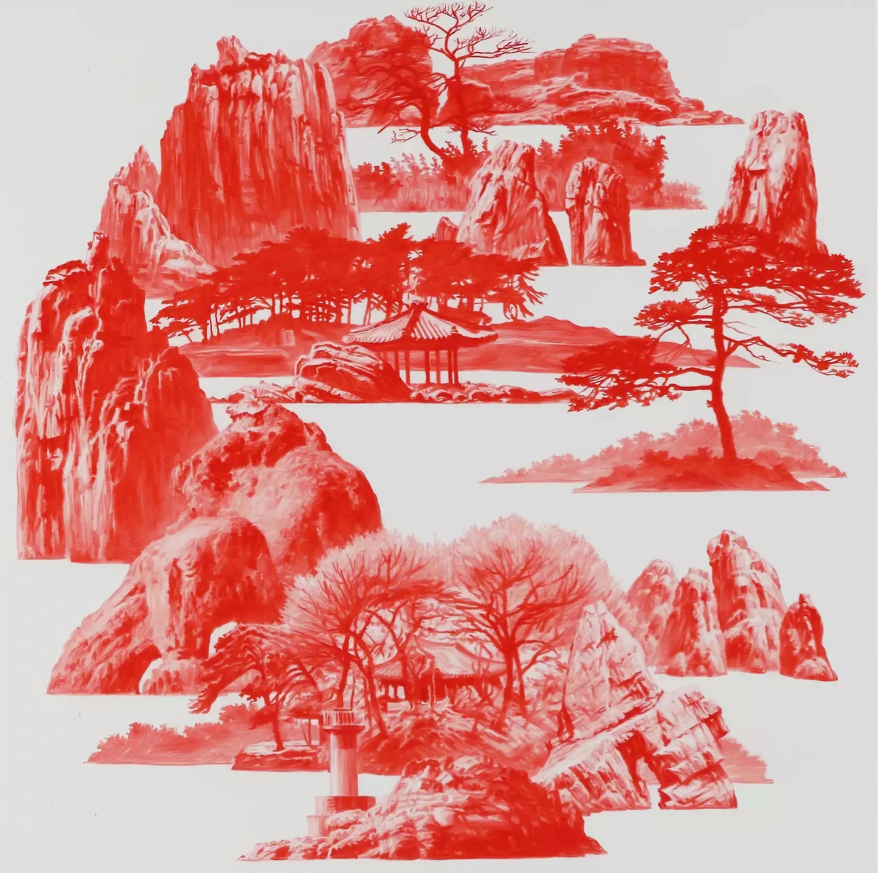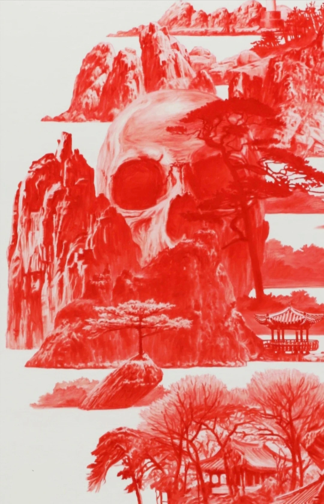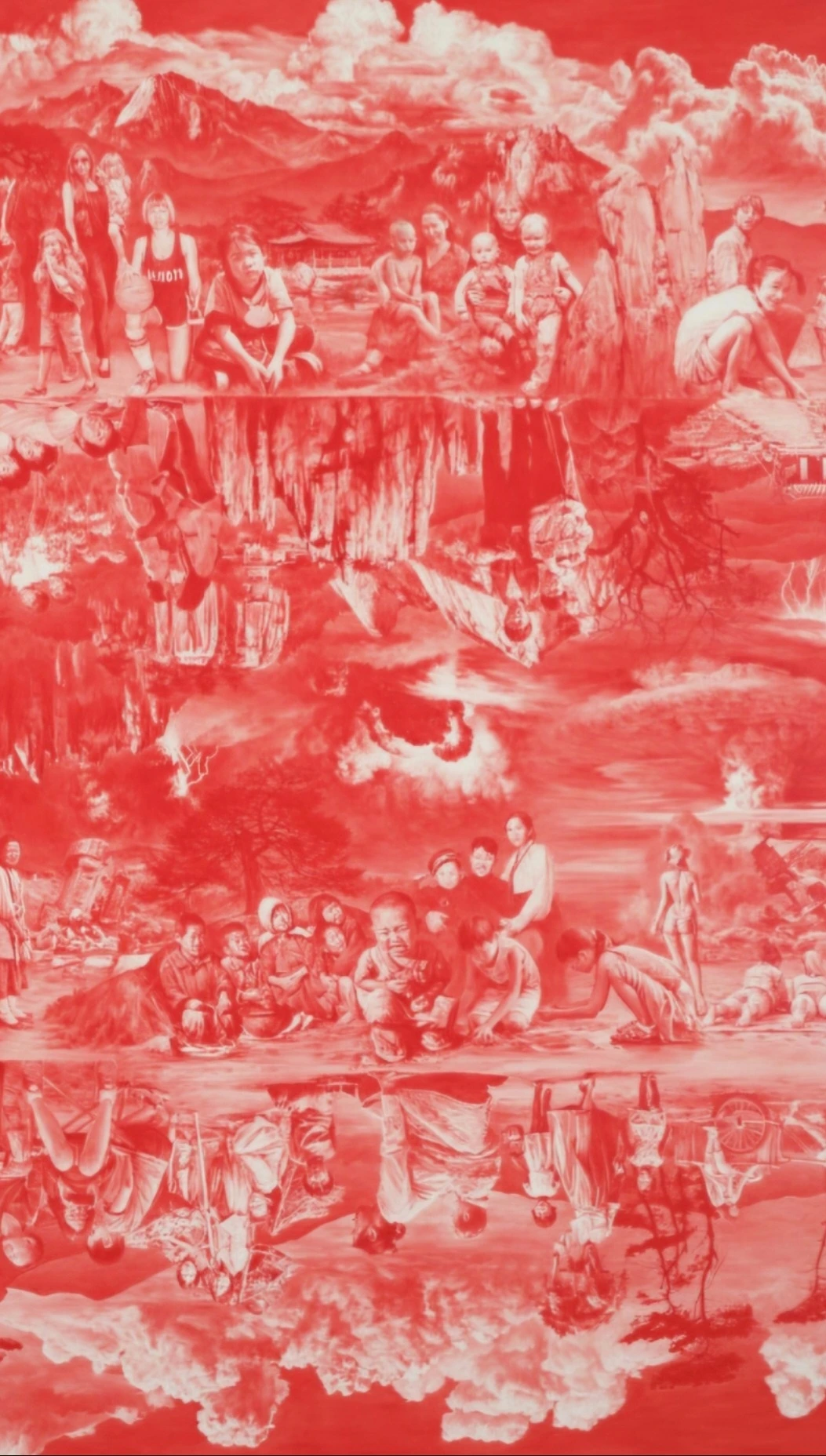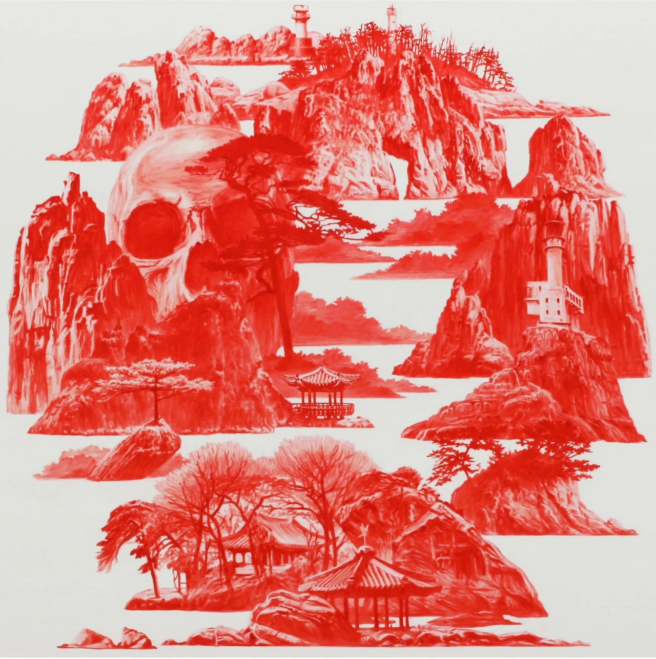 한국보다 해외에서 더 유명하며 온통 붉은빛이 낭자한 서사로 가득한 그림 'Between Red' 시리즈로 유명한 작가 이세현 Sea Hyun Lee, 비무장 지대에서 근무했던 경험에서 영감을 받은 그의 작품은 작가가 야간 근무를 할 때 착용했던 적외선 고글을 통해 보았던 고국의 모습을 담고 있는데, 고통스러운 기억이 가득함에도 불구, 무서우리만큼 평화롭던 광경은 작가의 캔버스 위에서 진홍빛 언어로 현현되며 과거, 그곳에서의 갈등을 엄숙하게 상기시켜 준다.