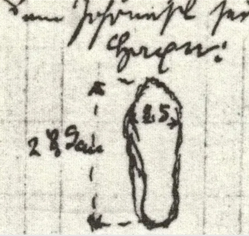 밀레바가 아인슈타인에게 덧신을 만들어주려고 발 사이즈를 요청했지만 그가 그녀의 공부시간을 빼앗을 것을 염려해 거절하다 몇 주 후 보냈다는 아인슈타인의 발 드로잉