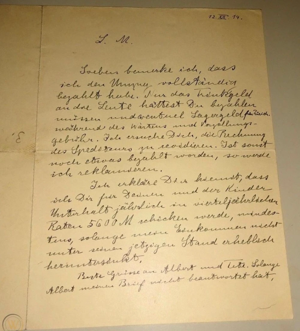 Albert Einstein Personal Handwritten Letter To his Wife Mileva Maric' 아내에게 보내는 친필서신 @worthpoint.com