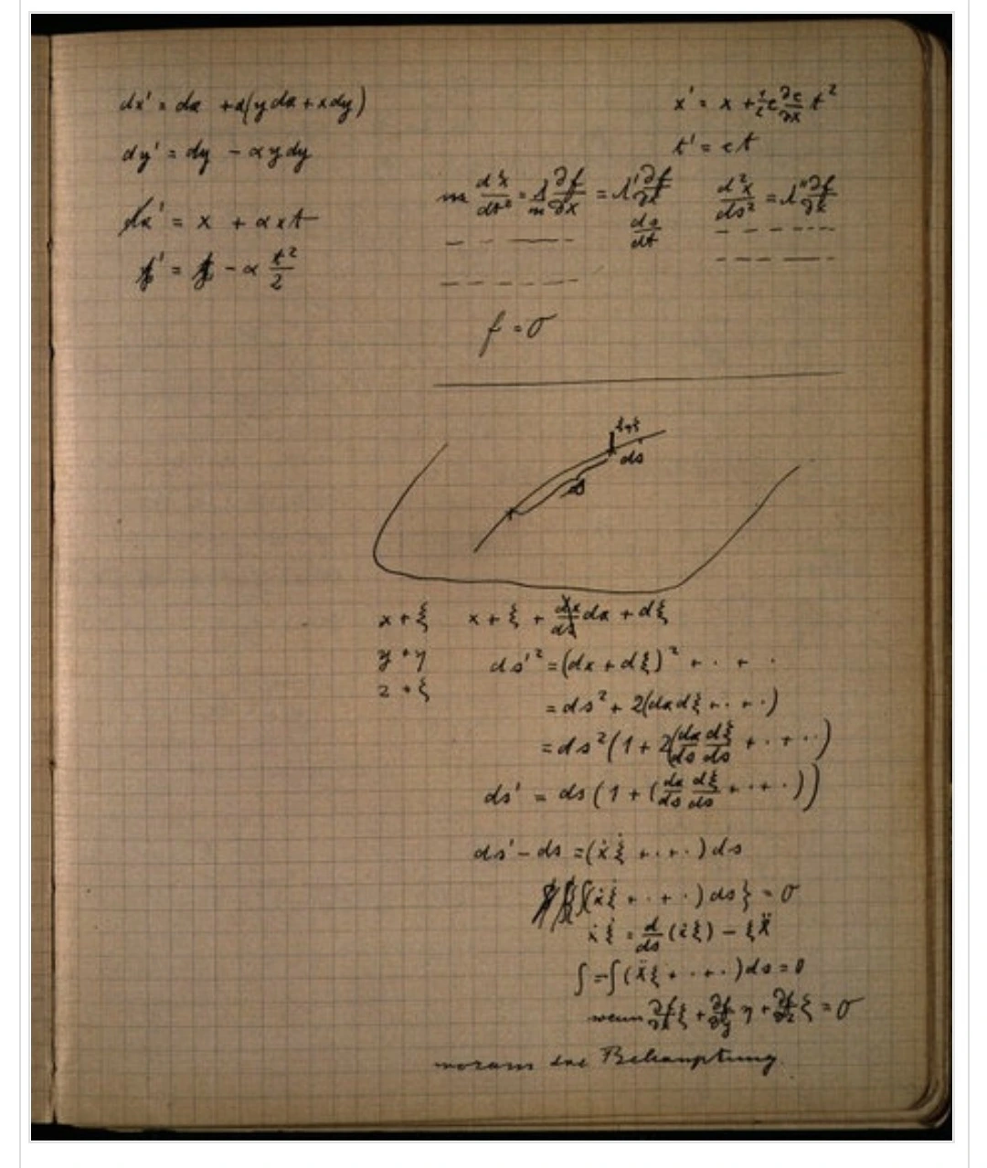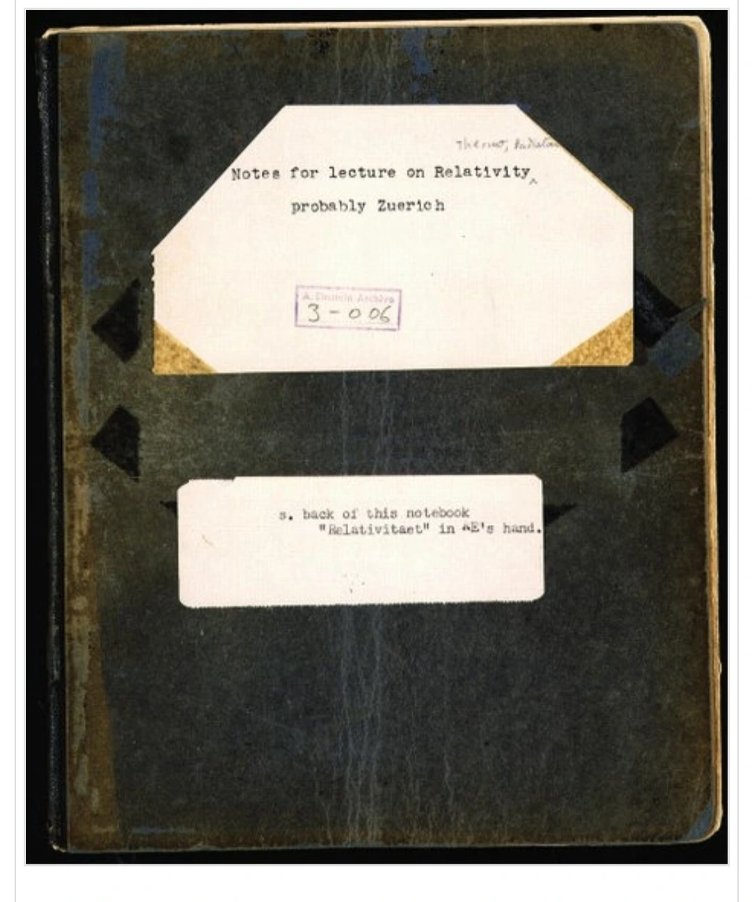 아인슈타인의 과학 연구에서 가장 위대한 업적인 일반 상대성 이론을 연구한 과정을 담은 취리히 노트Zurich notebook. pitt. edu
