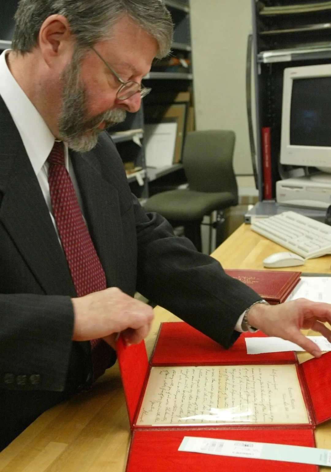 2004년 에이브러햄 링컨이 율리시스 S. 그랜트에게 보낸 편지와 함께한 Chris Coover, 2022년 4월 72세로 뉴저지 주 리빙스턴에서 사망- new york times