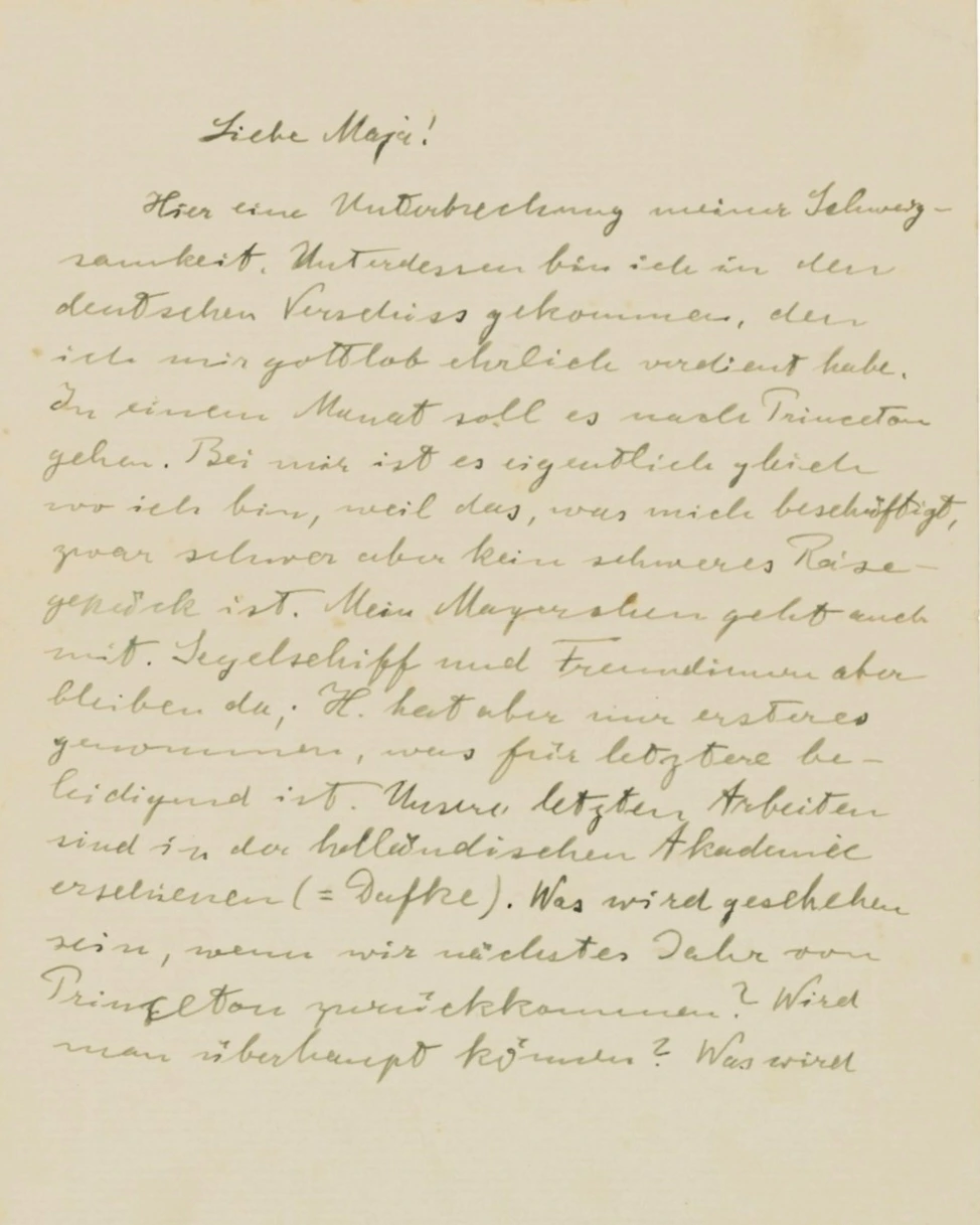 Autograph letter signed ('Albert') to his sister, Maja 나치의 탄압으로 미국으로 떠나기 전날 여동생 마야에게 보낸 편지Christies