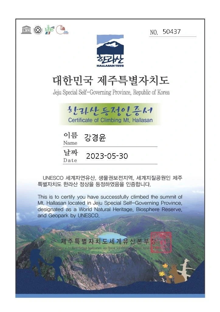 그리고 등반 인증서.