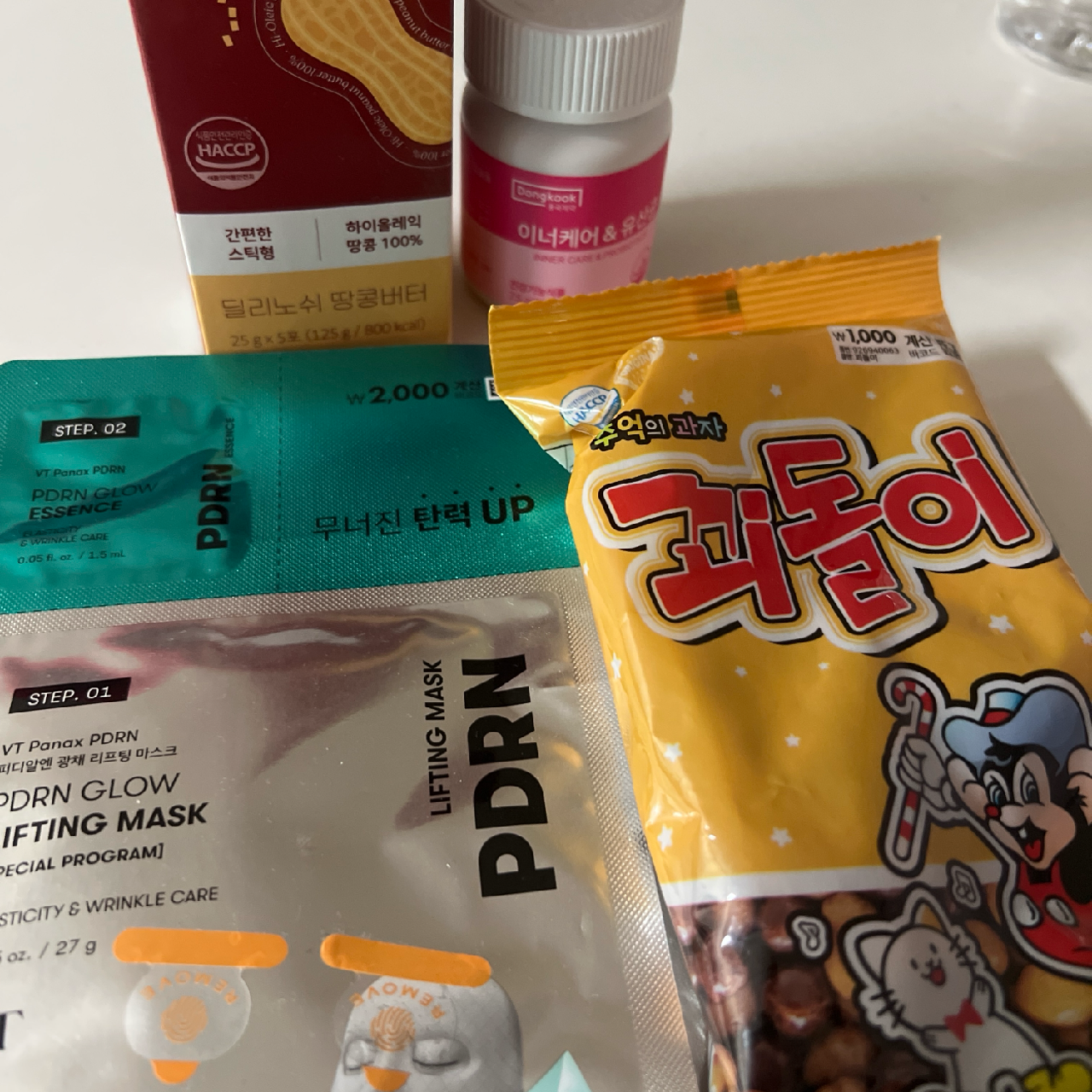 차돌박이, 유산균, 과자들…