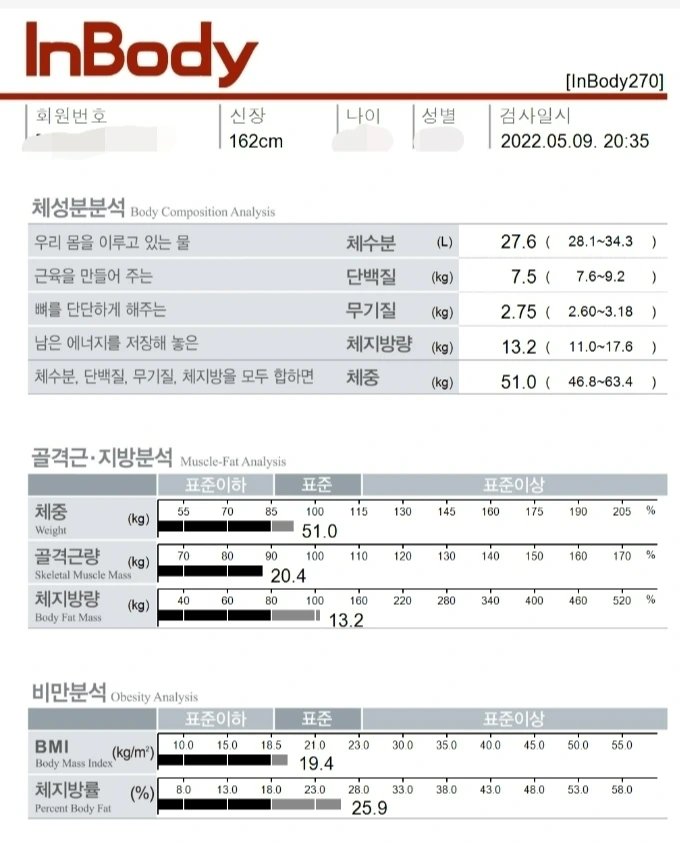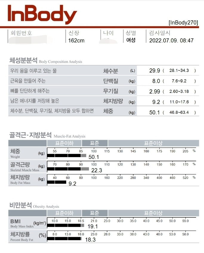- 몸무게 : 51kg → 50.3kg→ 50.1kg