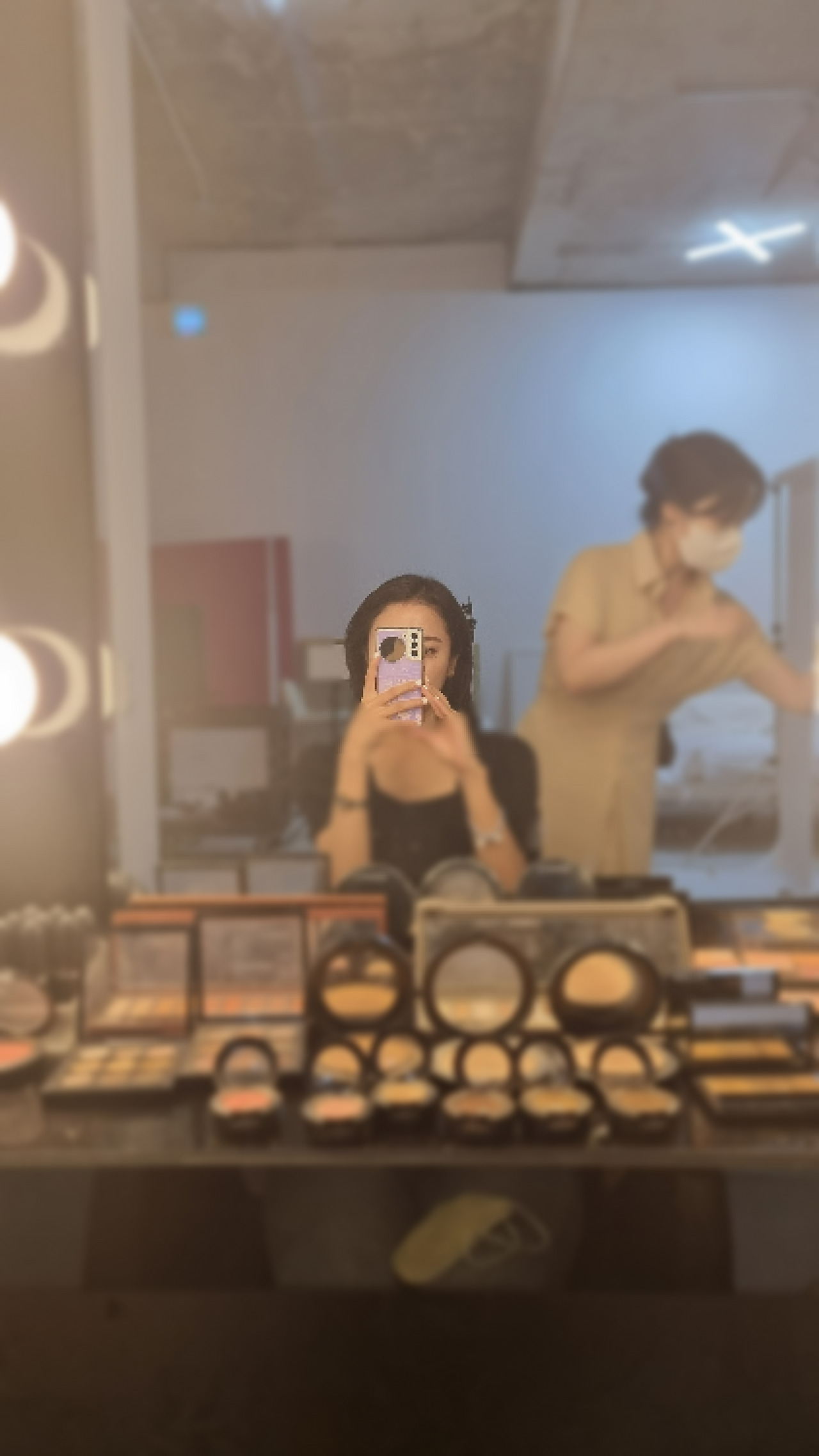그리고 헤어&메이크업 해주시는 분과 시안 다시 한번 보면서 내가 원하는 느낌을 말하고 헤/메에 들어갔는데 음.. 사실 나는 내 얼굴에 맞게 내가 스스로 꾸미는 걸 좋아해서 그런지 뭔가 전체적으로 어색했다. 해 주신 선생님이실력이 없으신 게 아니라 이런 화장을 처음 해봐서 그냥 스스로 너무 어색했음!