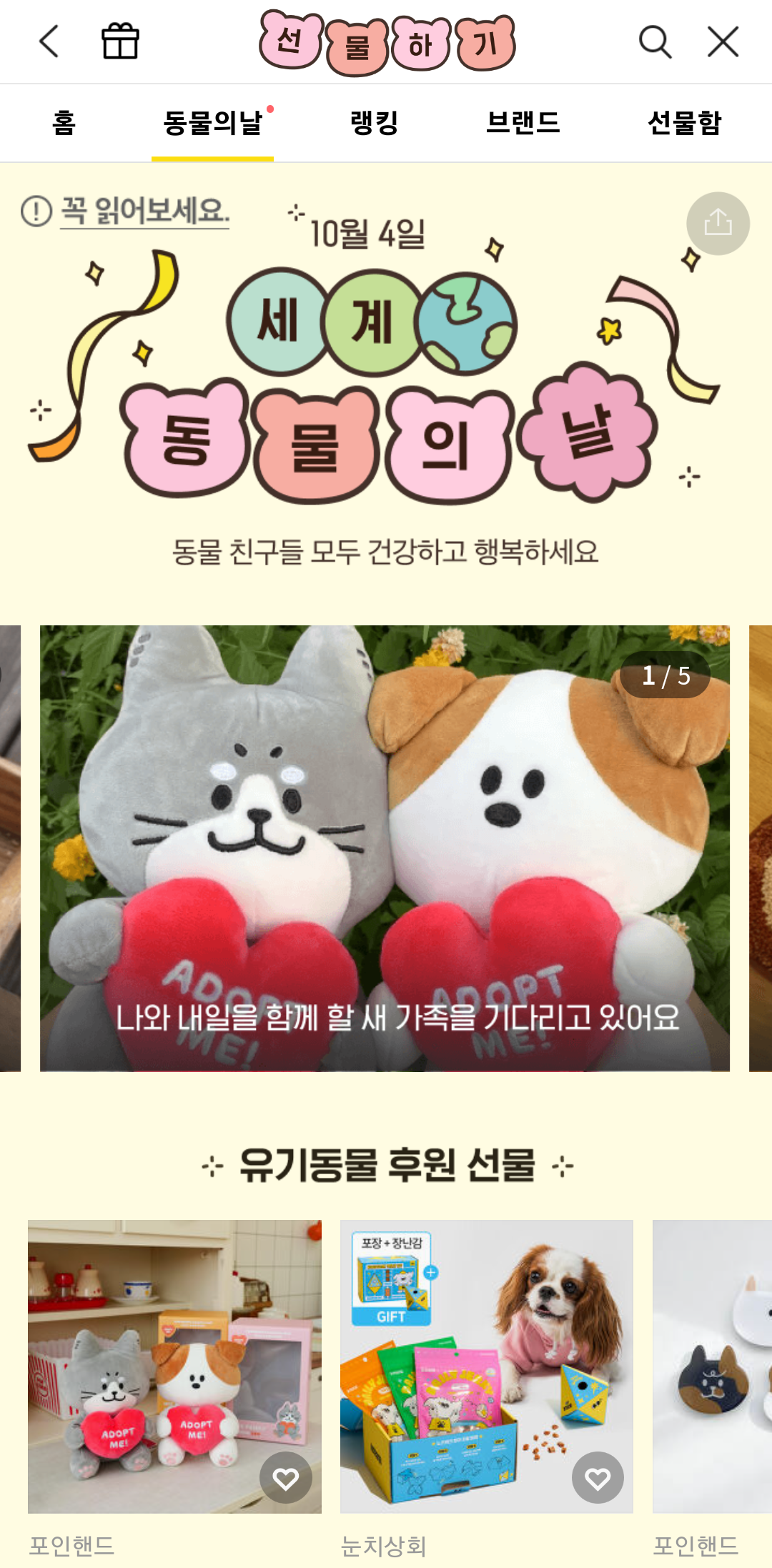 비록 첫 번째 실험인 선물 기록은 개인적으로 참 별로라고 생각했지만, 동물의 날 탭은 유기견 후원, 반려동물들 상품들을 알차게 모아둔 구좌라 유쾌하게 잘 보았기에 좋다고 생각했다. (그냥 귀여운 게 최고야..)