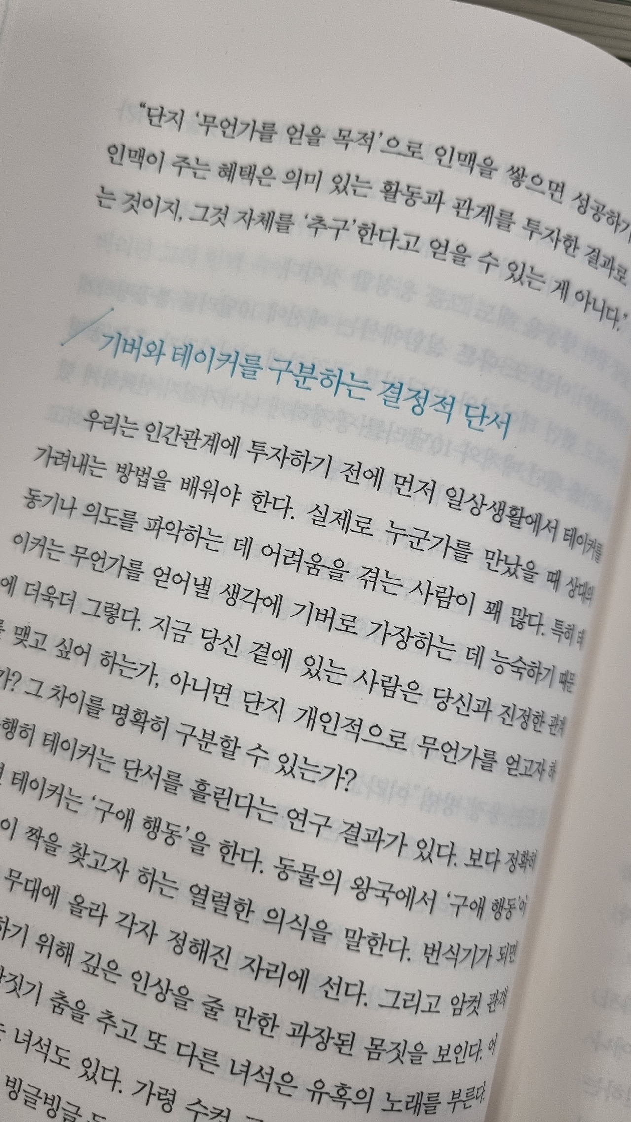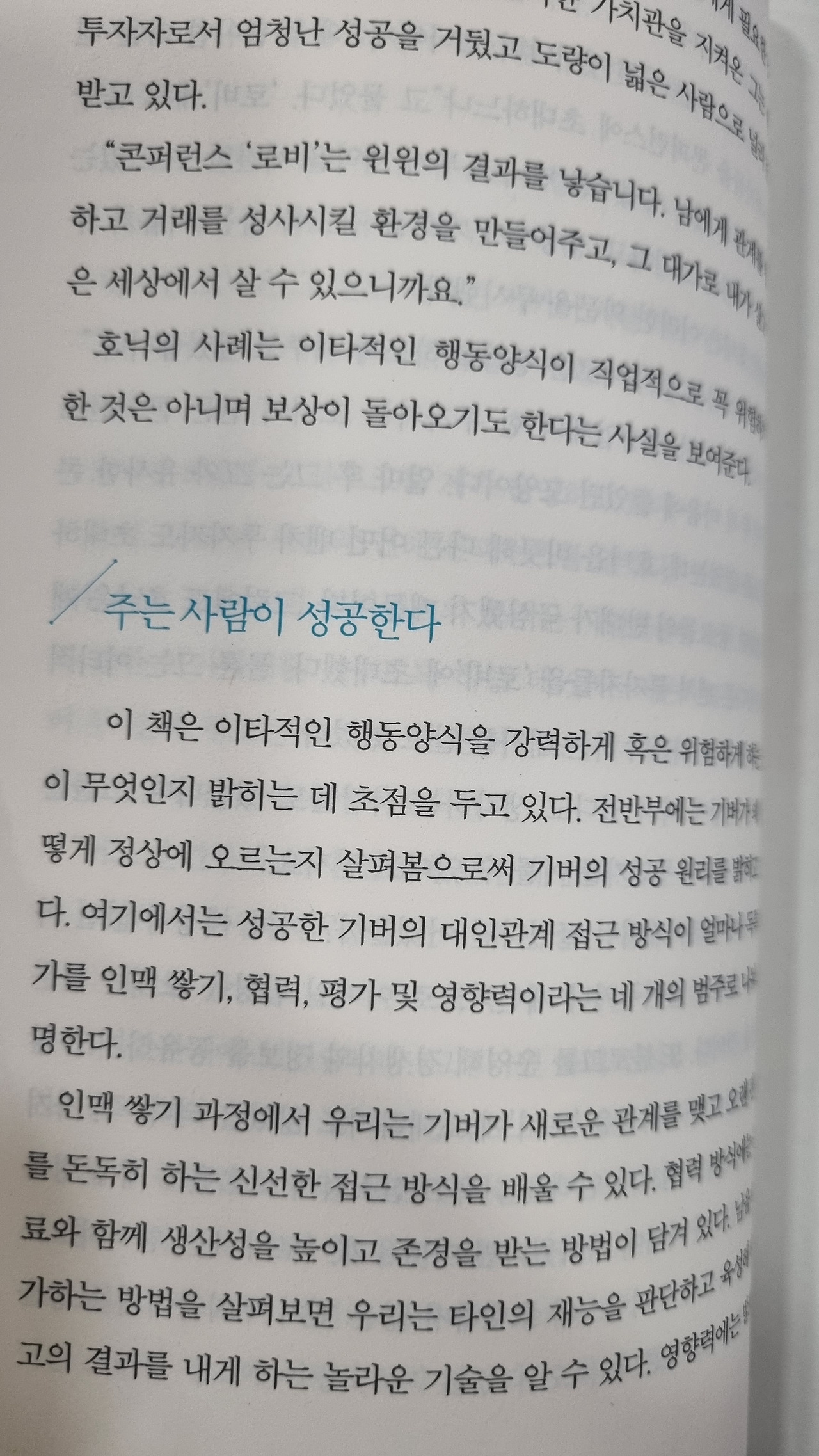 주는 사람(giver)이 성공한다. giver가 되자! 그렇다고 멍충하게 모든 사람들한테 퍼주라는 말이 아니다. 빼먹기만을 바라고 있는 테이커(taker)들을 현명하게 걸러내고, 내가 준 것들을 당연하게 생각하지 않는 사람들에게 더 주고, 더 주어야 한다. 그들에겐 내가 주지만 또 내가 얻어가는 것들이 확실히 있다. 그러니 아까워하지 말고 진심으로 그들에게 주자! 테이커들은 걍.. 손절하는 게 답! 푸항항