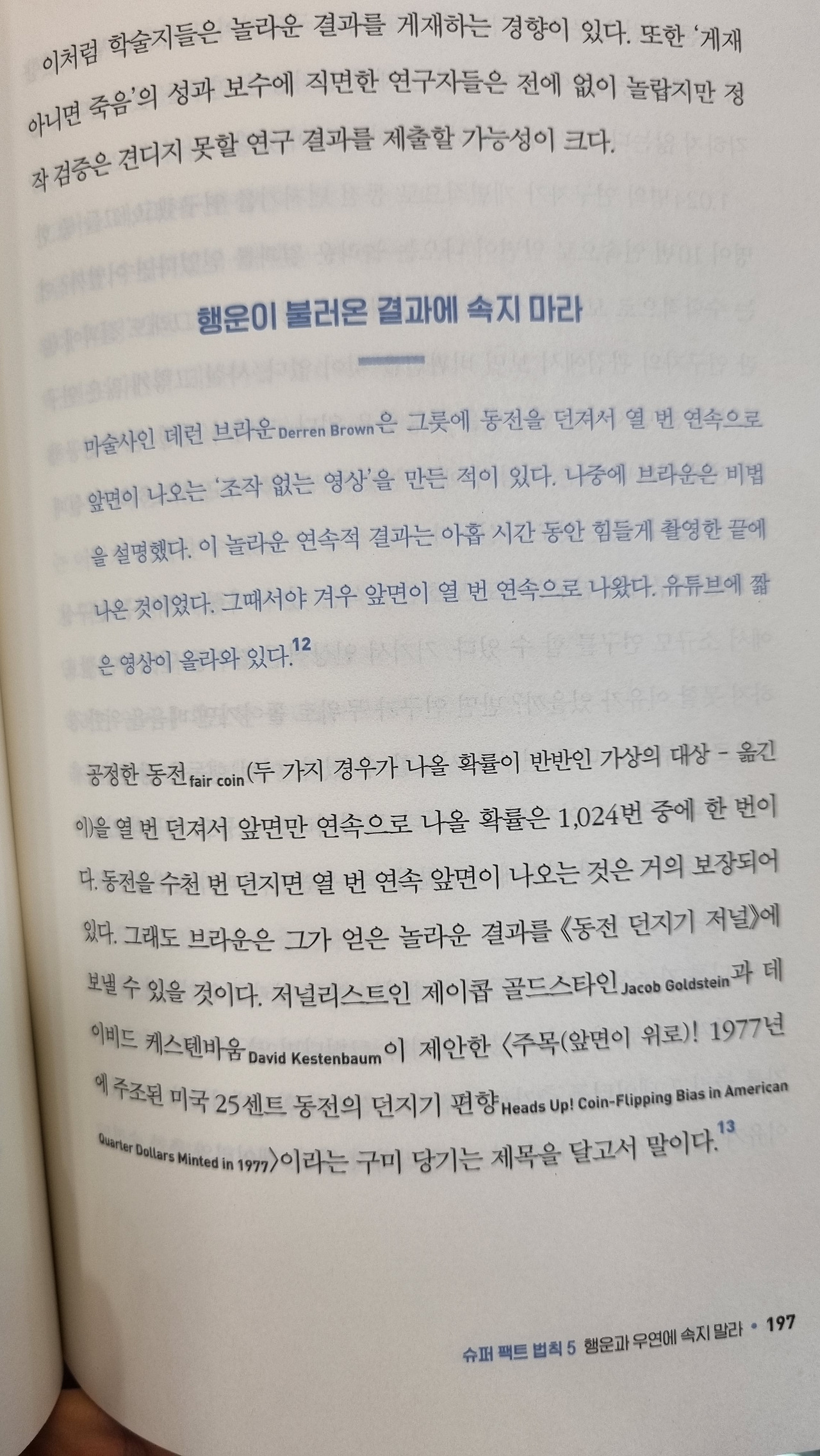 팀 하포드는 ‘슈퍼 팩트를 갖기 위해서는 숫자가 말하는 메시지를 파악하고, 감정에 지배되는 대신 지배해야 하며, 슈퍼 팩트를 몸에 익히면 초예측자가 될 수 있다’라고 말한다. 여기서 말하는 초예측자는 기꺼이 유연한 사고방식으로 생각을 바꾸는 사람들이다. 수용적인 사고방식으로 내게 들어오는 '팩트'를 놓치지 않도록 늘 머리가 깨어있는 연습을 해야지! 그중 하나는 물론 책읽기라네..
