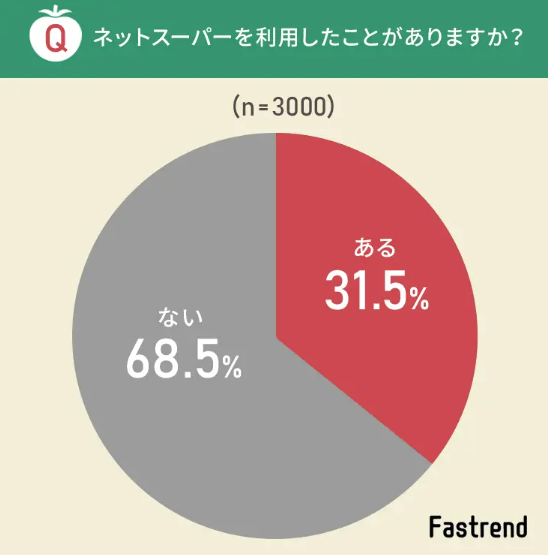 2022년 2월에 NEXER에서 실시한 넷슈퍼(퀵커머스) 관련한 설문조사이다. 무려 3천명중 과반수이상인 68.5%가 단 한번도 퀵커머스 서비스를 사용해본 적이 없다고 대답했고, 이 중 일부 사용해본적 있는 31.5%의 유저는 94.3%가 편리하고 만족했다고 답하였다.