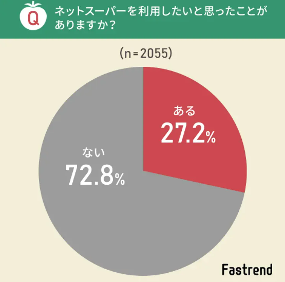 넷 슈퍼를 이용하고 싶다는 생각이 든 적 있나요? ( 있다27.2% / 없다 72.8% )