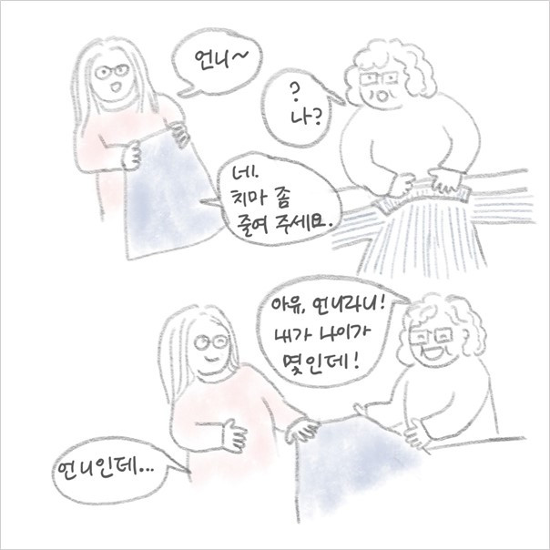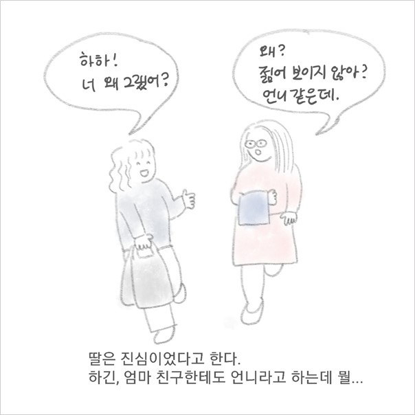 하긴, 엄마 친구들도 언니라고 부르는 애니까.