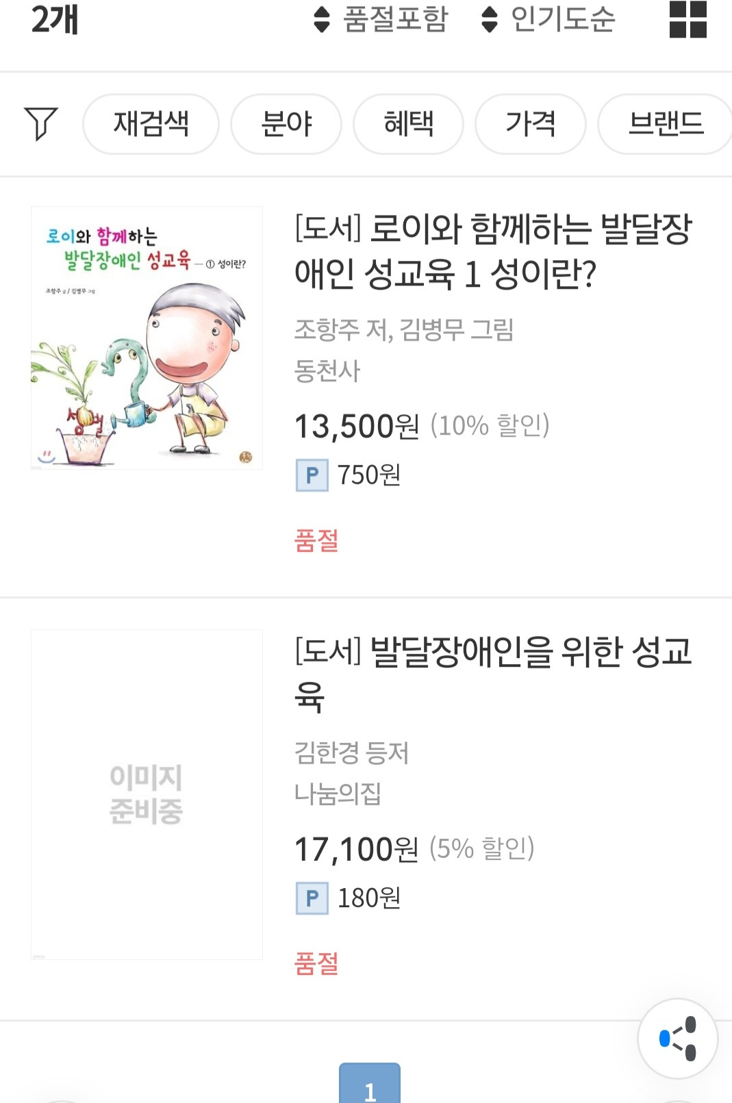 막연히 어찌해야 할지 몰라 책이라도 찾아보고자 검색했는데 '발달장애인 성교육'이란 검색어에 검색되는 책이 딱 두 권이었습니다.